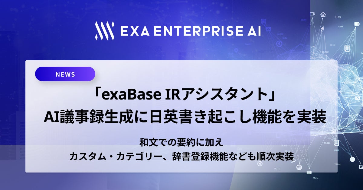 「exaBase IRアシスタント」、AI議事録生成に日英書き起こし機能を実装