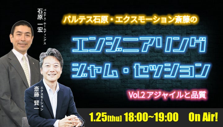 今回も、エクスモーション斎藤氏をゲストに迎え、バルテス石原とのトークセッションを繰り広げてまいります。