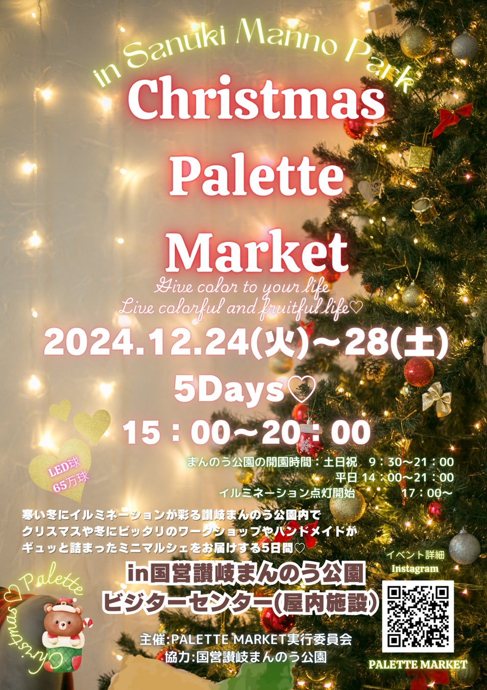 12/24(火)~28(土)には園内のビジターセンターにて「Christmas Palette Market」を同時開催。