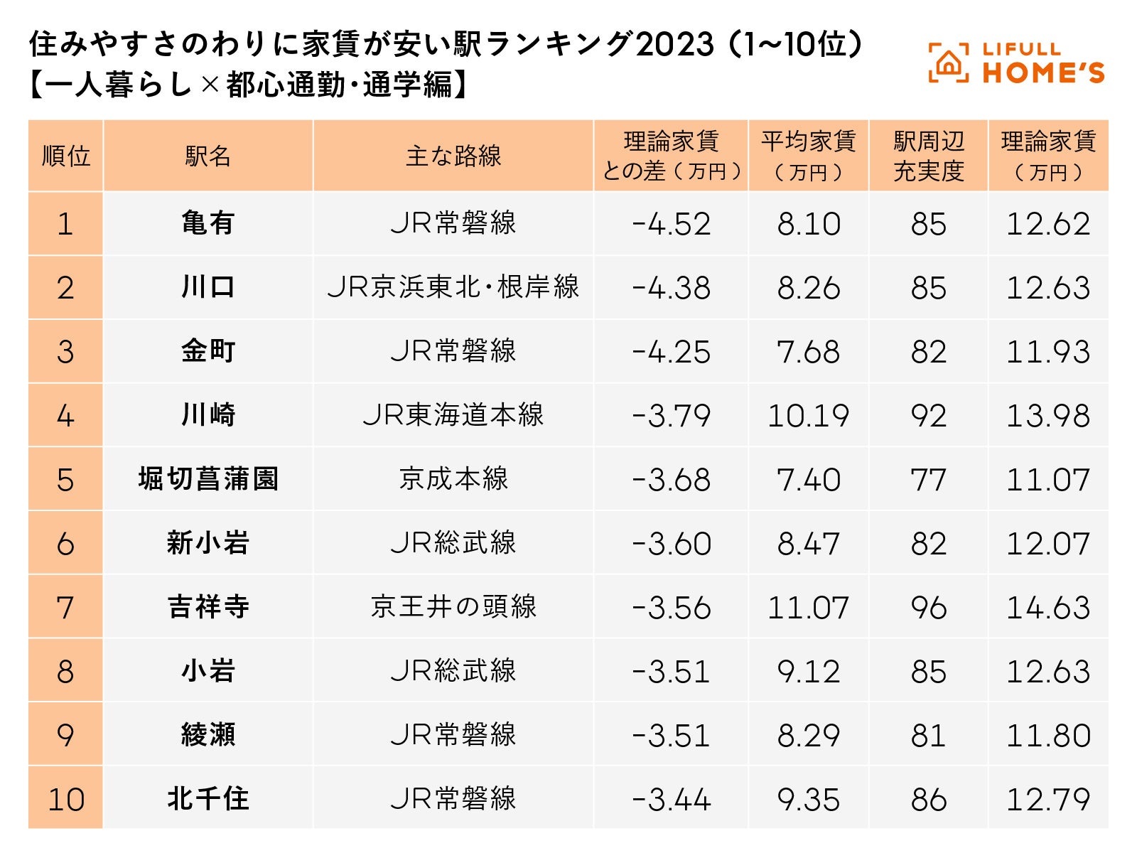 初めての一人暮らし!「近い・安い・住みやすい」駅はどこ?【一人暮らし×都心通勤・通学編】住みやすさのわりに家賃が安い駅ランキング2023 LIFULL HOME'S PRESSが発表