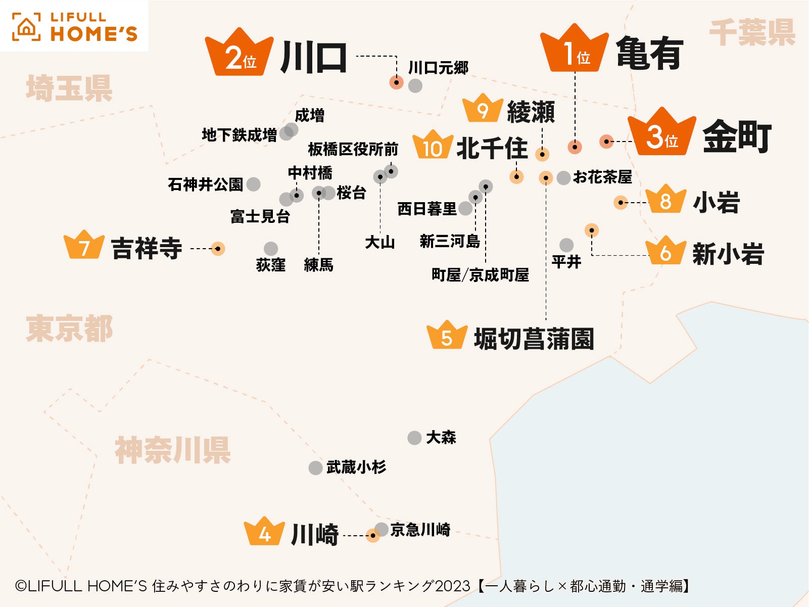 ~ 1位 亀有駅、2位 川口駅、3位 金町駅。城東エリアや東京との県境駅が上位に ~