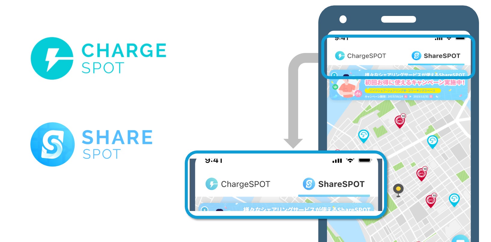 このような背景を受けて「ChargeSPOT」の豊富な設置台数、ユーザー数を生かし「ShareSPOT」を展開することで、街なかのあらゆる"モノのシェアリング"を更に促進しシェアリングサービスの利用機会を拡大することを目的に、このたびのUI刷新を実施いたしました。