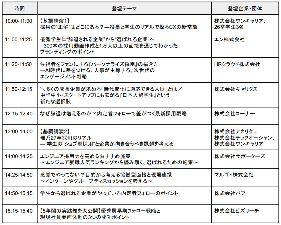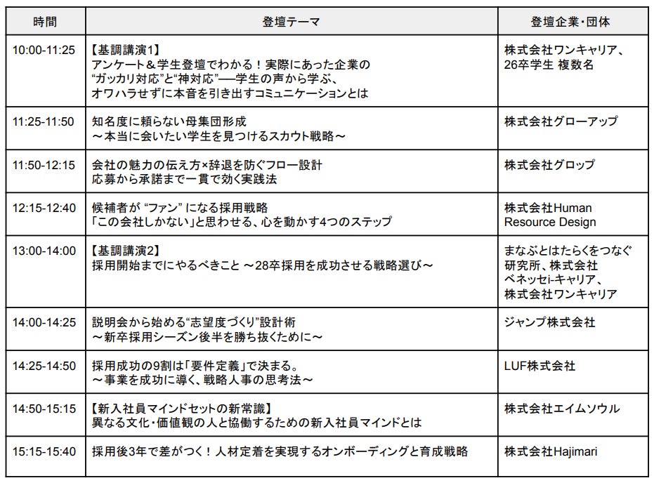 新卒採用サービス「ワンキャリア」を展開する株式会社ワンキャリア(本社:東京都渋谷区、代表取締役社長 執行役員CEO:宮下 尚之、以下「ワンキャリア」)は、新卒採用に特化した企業・団体の人事・採用担当者向けオンラインイベント『新卒採用の地図 〜採用成功への「最短ルート」が見つかる、3日間〜』を、2025年11月10日(月)から12日(水)の3日間にわたり開催します。このたび、実施する全29プログラムが決定しました。