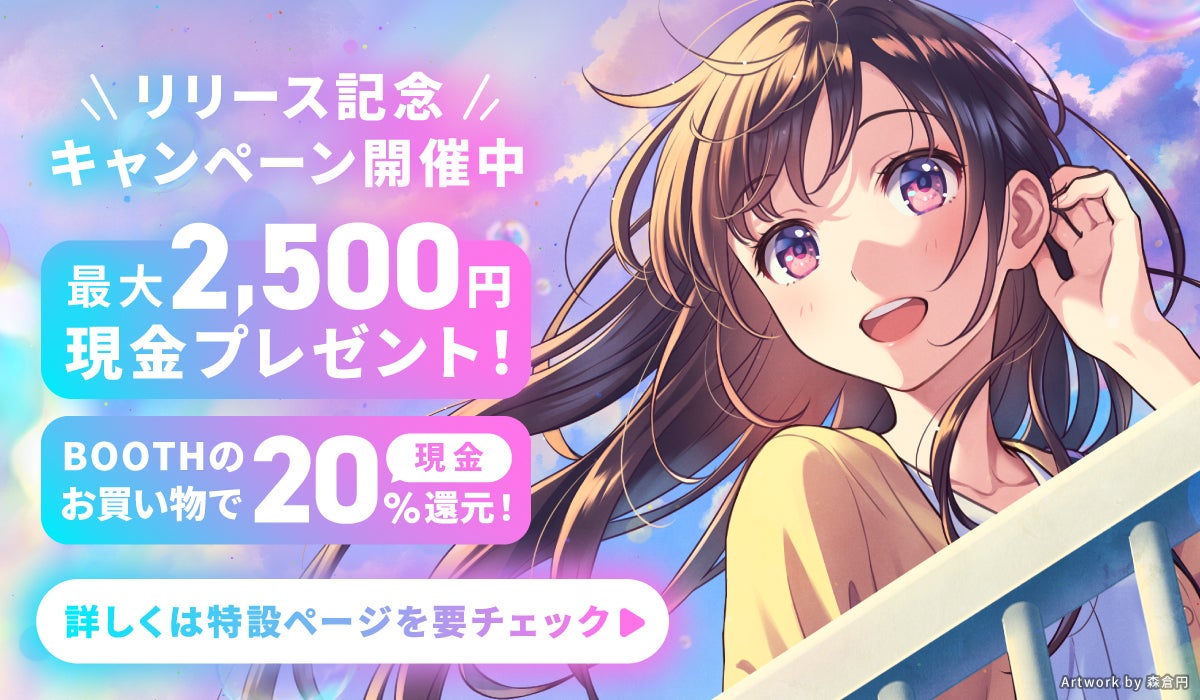 期間中に「ピクシブかんたん決済」をBOOTHで1,000円以上ご利用いただいた方へ、期間内の決済金額の最大20%(期間中の付与上限最大3,000円)を現金還元します。