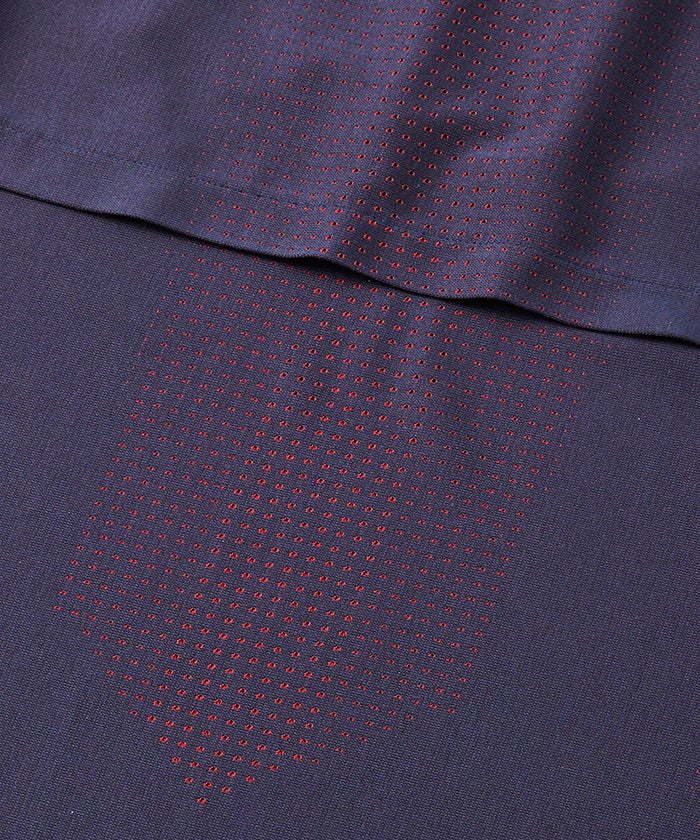 また、生地でもさらに不快感を軽減できないかという想いから、DISCでの身体の発汗データの研究により発汗の多い箇所を割り出し、その箇所に効果的な通気性をもたらす独自構造の生地も開発。