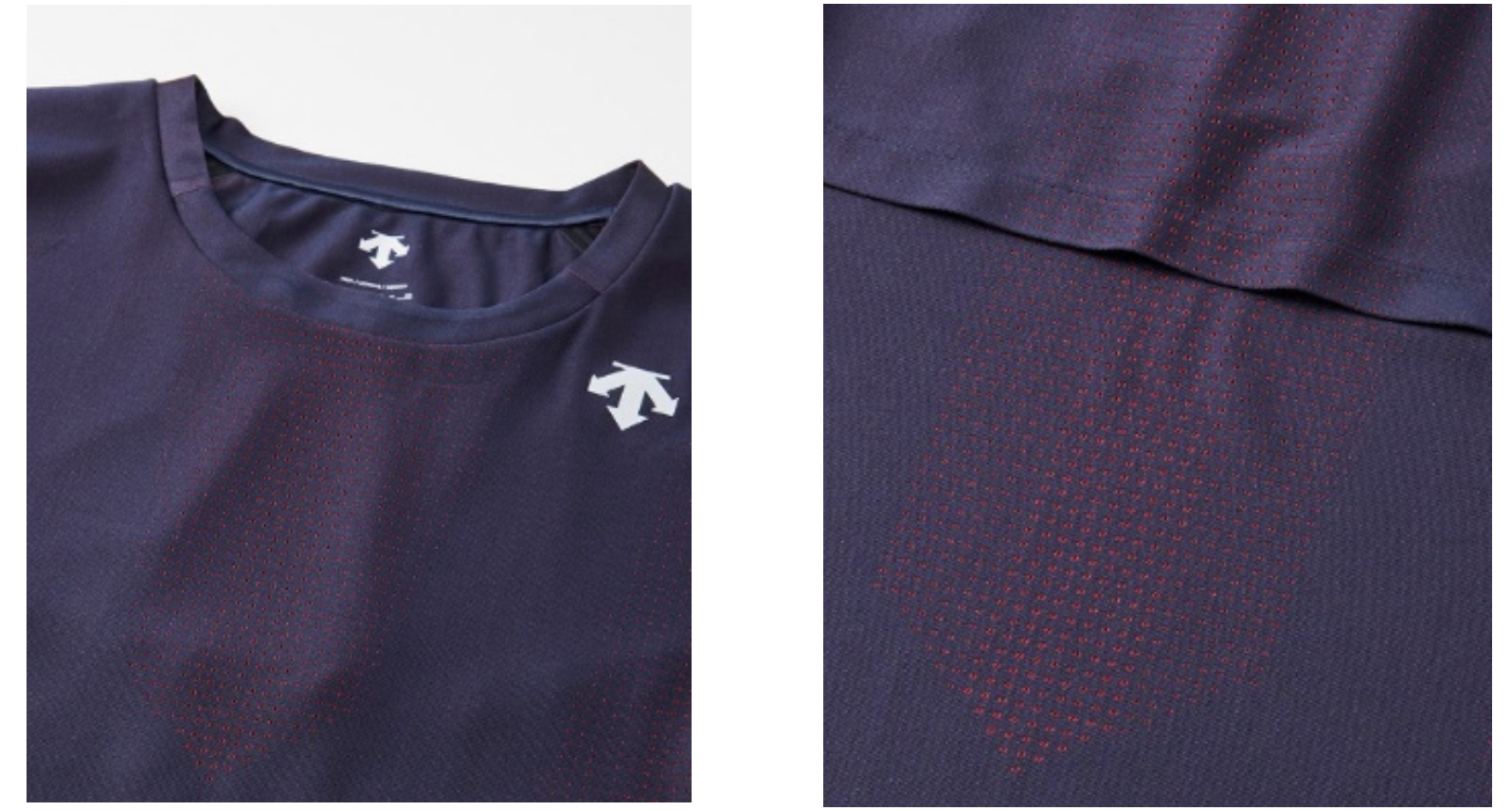DISCにて身体の発汗データを研究した「スウェットマッピング理論」と、デサントの独自素材開発技術「Schematech®」を組み合わせて開発した独自生地。