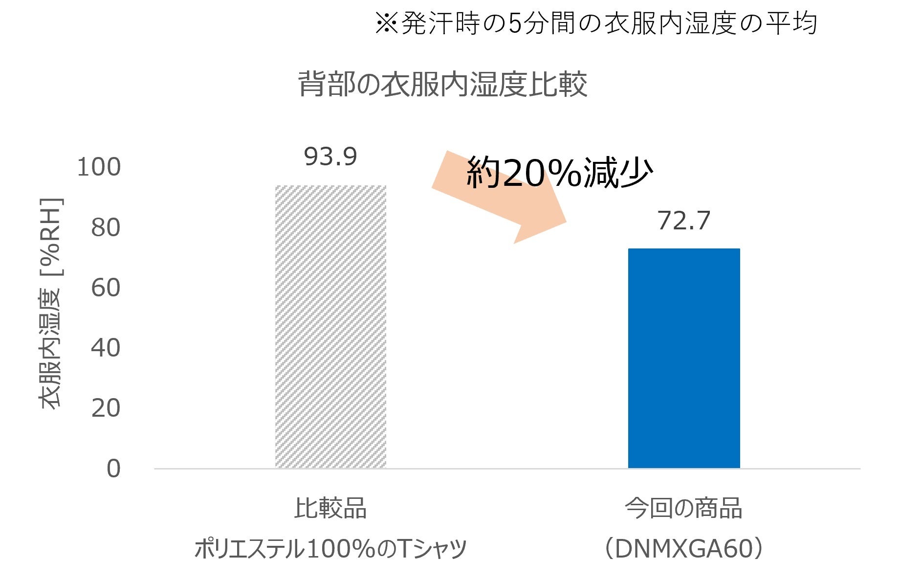 比較品に比べ、背部の衣服内湿度が約20%減少
