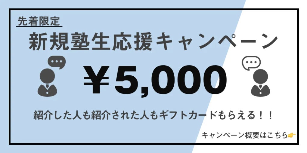 入塾時に紹介した人・された人双方にギフトカード5000円分プレゼント!