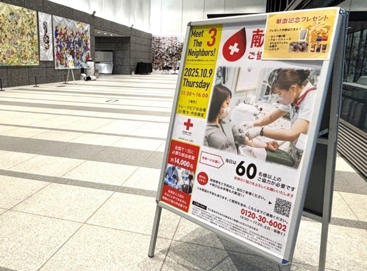 トレードピアお台場は、災害時に近隣の方々にも避難していただける一時避難所となっており、当社は、近隣施設などと連携し、本イベントを開催することで、同ビルもしくは近隣のビルで働く皆さまのコミュニティづくりをサポートしてまいります。本イベントは、防災イベントを兼ね「全館避難訓練」、「防災ワークショップ(消火体験)」、「献血会」も実施しております。