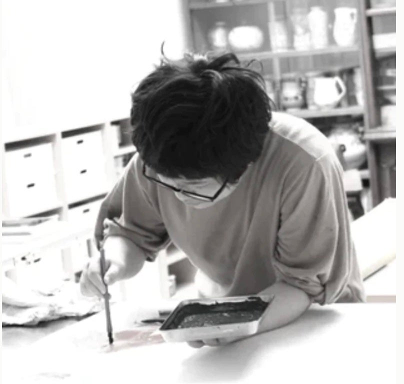 2007年生まれ。お寿司、ゲーム、料理、絵を描くことが大好き。12歳から作品づくりをはじめ、様々な絵作りをするなかでも気に入っているのがノート一面に書き綴られた文字のようなもの。はたしてこの文字が古代の碑文なのか、近未来の新言語なのか。流れるように走り書かれたタイポグラフィに意味があるのかどうかは本人のみぞ知る。
