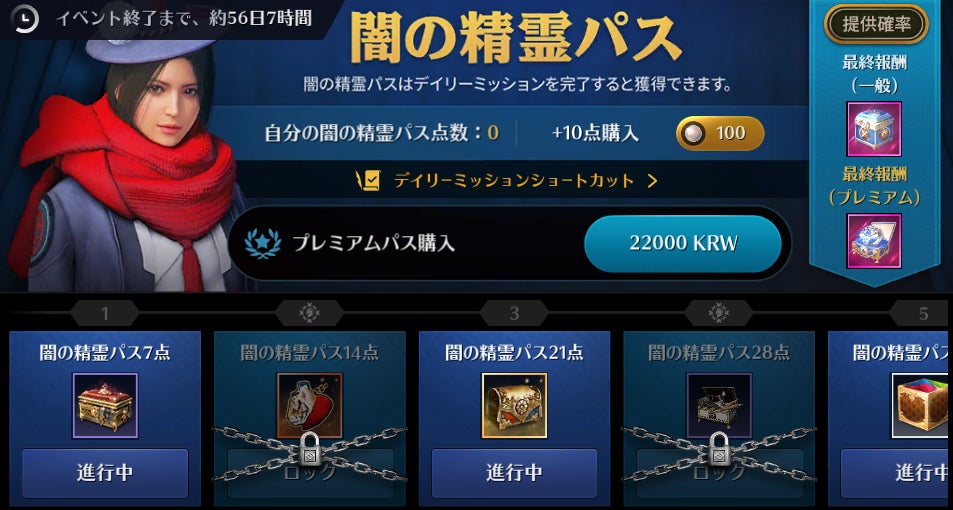 「プレミアムパス」購入によって、新規ペット「陽光のちび虎」や「雪花のちび虎」、新衣装「西遊使節衣装箱」、その他にも「[太古]等級アクセサリー選択箱」等が手に入る闇の精霊パスイベントが開催されます。