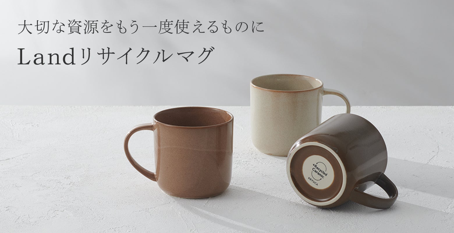 「ものづくり」にこだわり、衣食住に関わるオリジナル商品を自社店舗で販売しているKEYUCA(社名:河淳株式会社 所在地:東京都中央区、代表:河崎淳三郎)は、普段使いしやすい機能性とお手頃価格はそのままに、リサイクルセラミックを使用した「Landリサイクルマグ」を2月11日(土)より販売いたしました。カラーは大地からヒントを得た3色展開です。