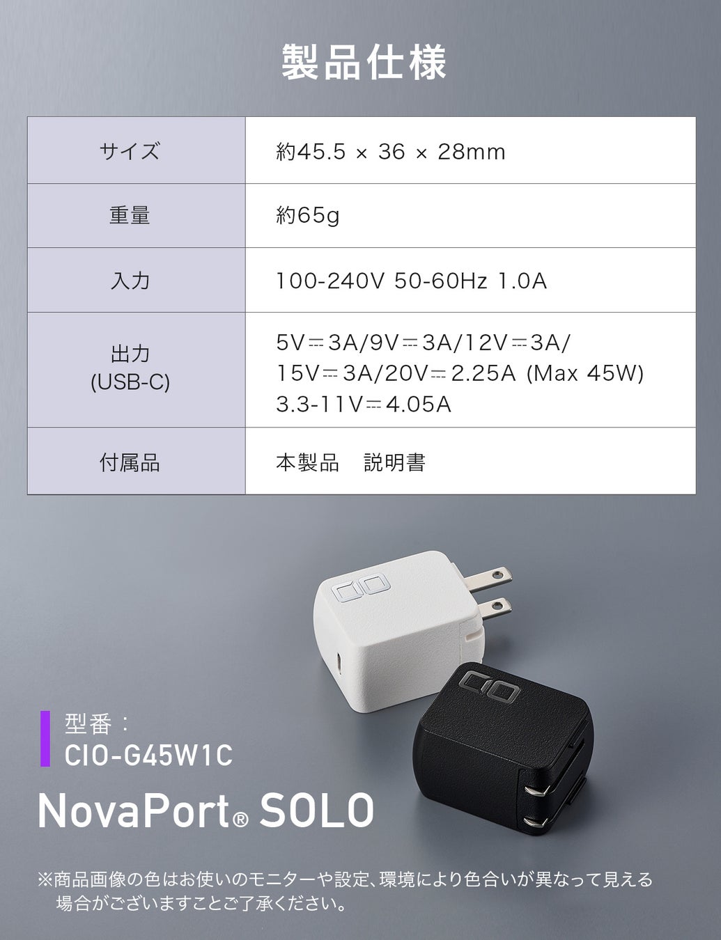 - NovaPort® SOLO 45W(CIO-G45W1C)の製品仕様