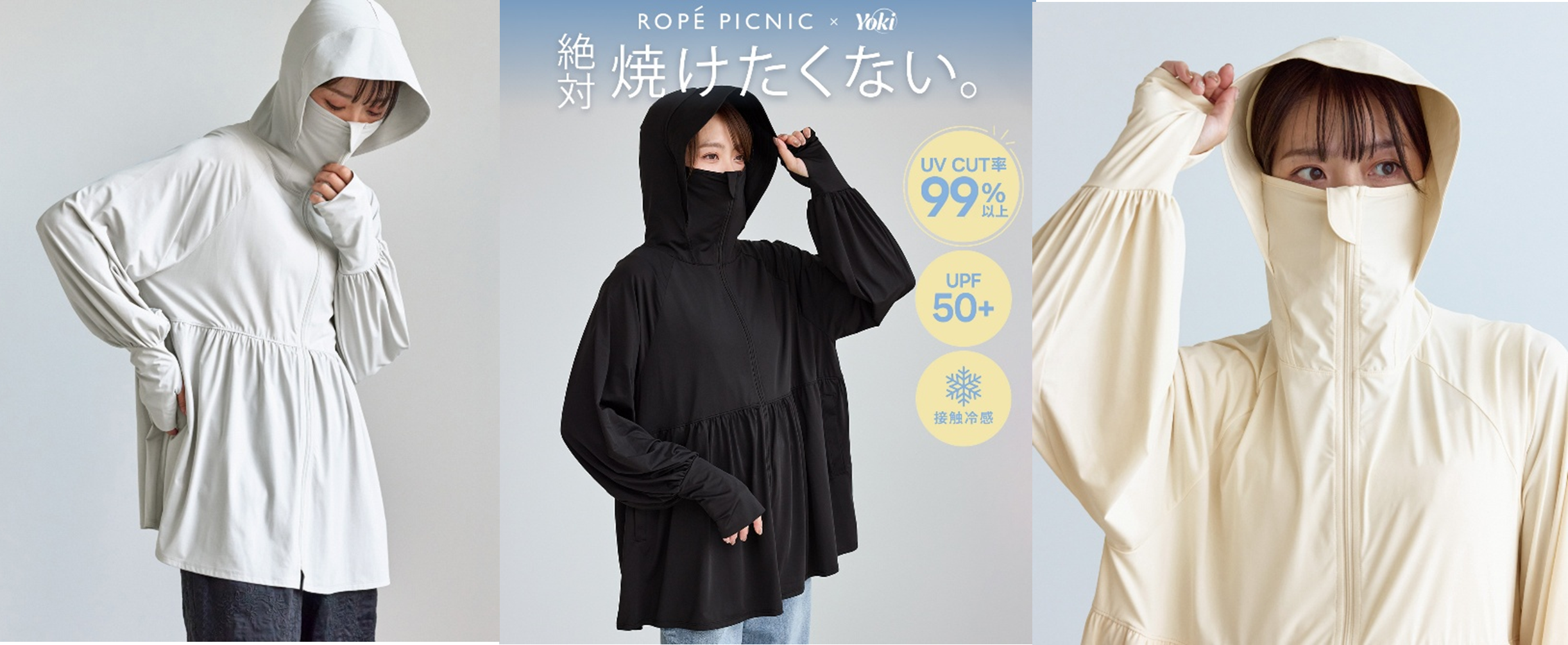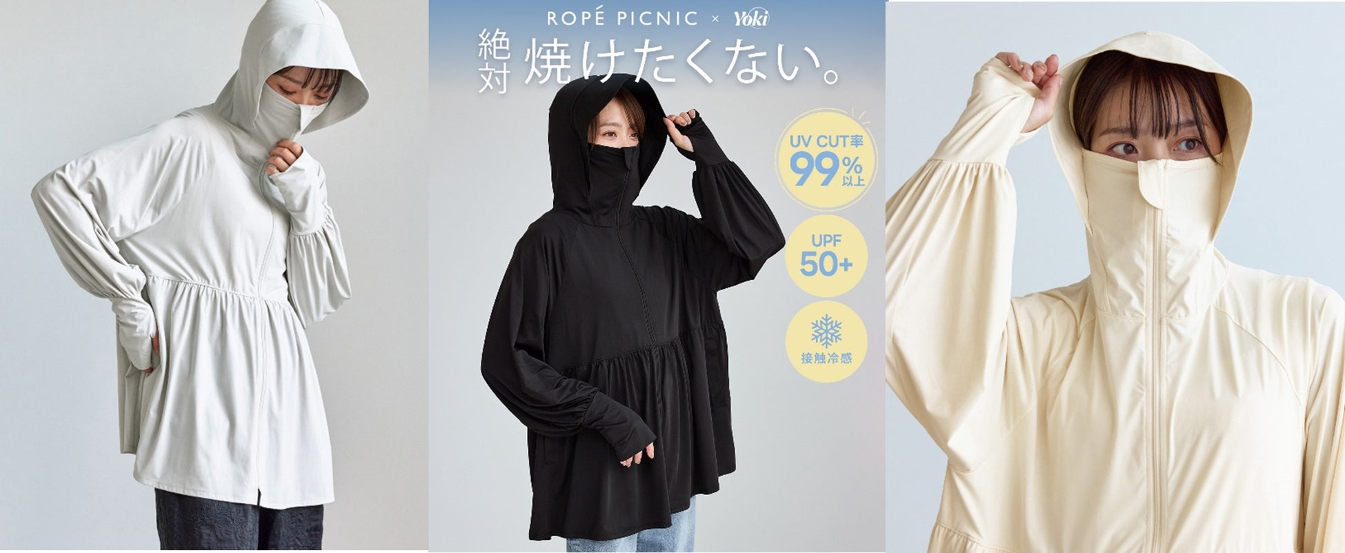 ファッションの力で日常を豊かにするライフスタイル創造カンパニーのクロスプラス株式会社(本社:愛知県名古屋市、代表取締役社長:山本 大寛)は、株式会社ジュン(本社:東京都港区、代表取締役社長:佐々木進、以下「ジュン」)が運営する、「ROPÉ PICNIC(ロペピクニック)」と、機能性ファッションブランド「Yoki(ヨキ)」による「“絶対焼けたくない”日焼け対策シリーズ」とのコラボレーションアイテムを、「ROPÉ PICNIC」全店舗およびジュン公式オンラインショッピングストア「J'aDoRe JUN ONLINE(ジャドール ジュン オンライン)」にて販売開始いたしました。