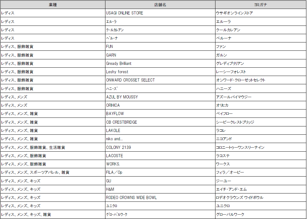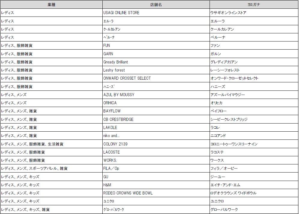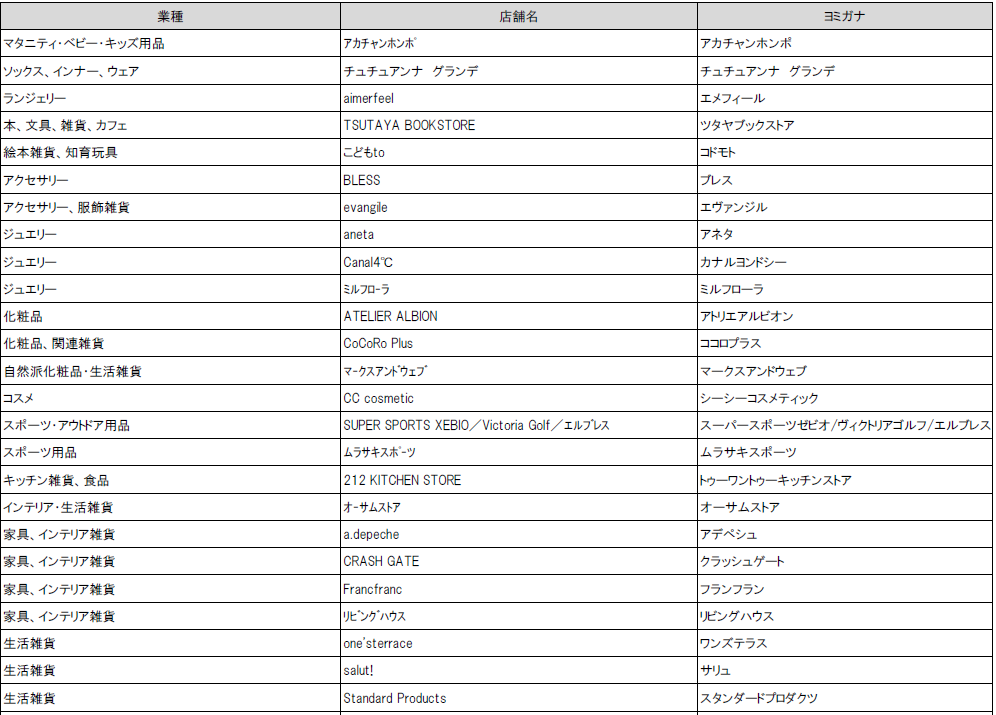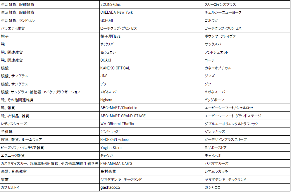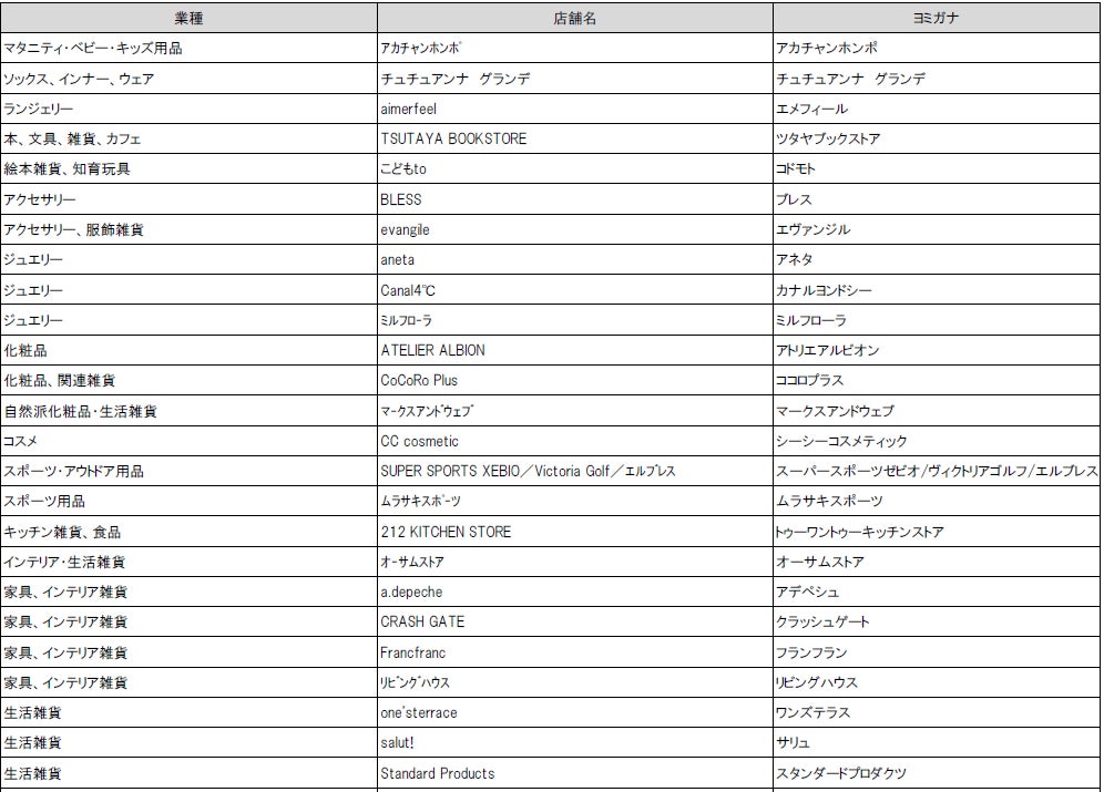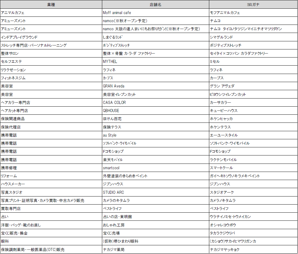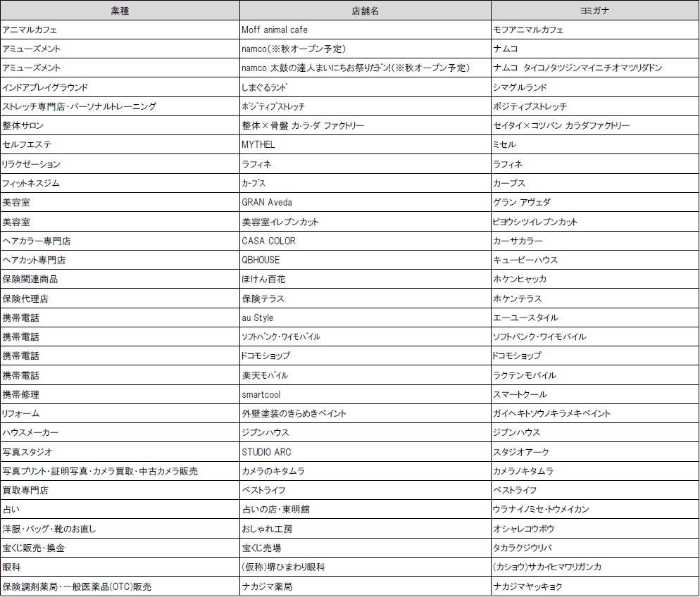 ファミリー層をメインに、シニア・ヤング層まで幅広い世代のお客さまにお楽しみいただける多彩な店舗・サービスを提供すべく、さまざまなファッション、雑貨、飲食、エンターテインメント、サービスなど話題性の高い約210店舗をバラエティ豊かに取りそろえます。今般、その中から186店舗を先行して発表いたします。