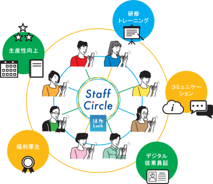 当社グループの商業施設で勤務される従業員の皆さまの働きやすさと働きがいを、スマートフォンアプリ「はたLuck®」を活用しながらサポートする取り組みです。2021年より40施設以上で導入しており、多くの従業員の皆さまにご好評いただいています。