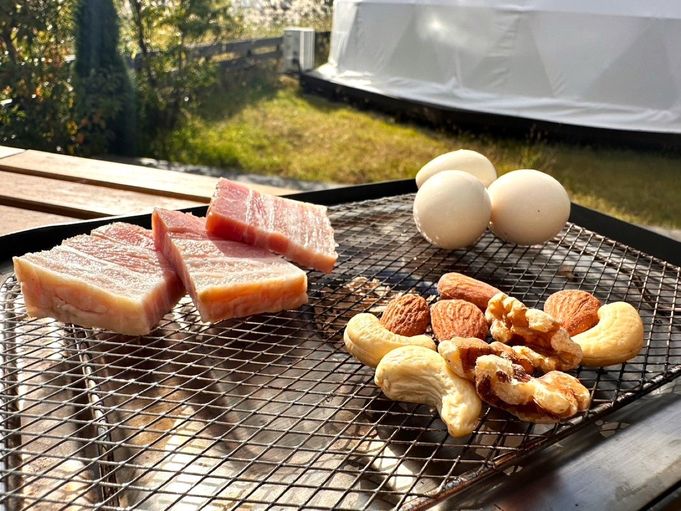 ■燻製食材追加サービス(富士ケ嶺豚のベーコン、うずらの卵)