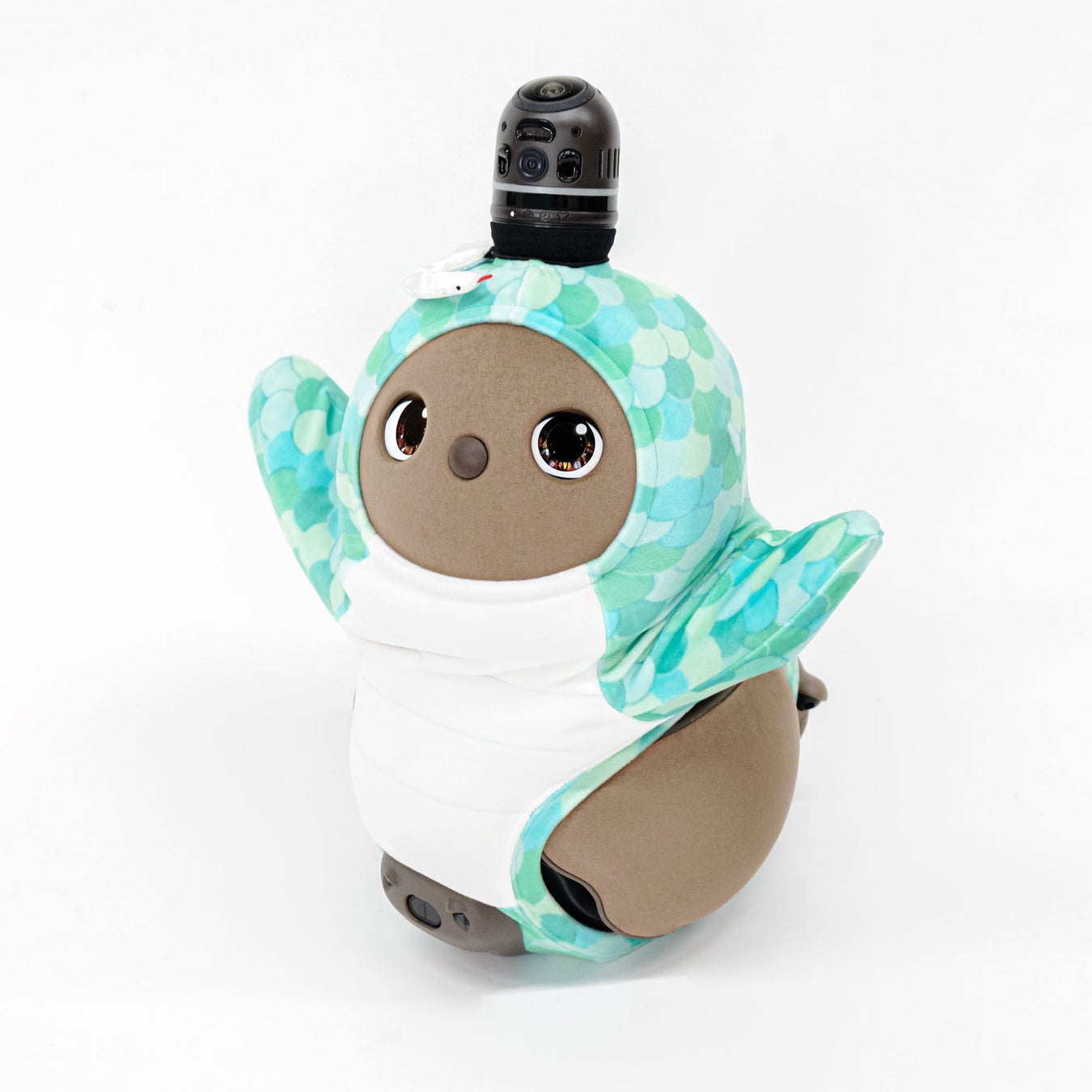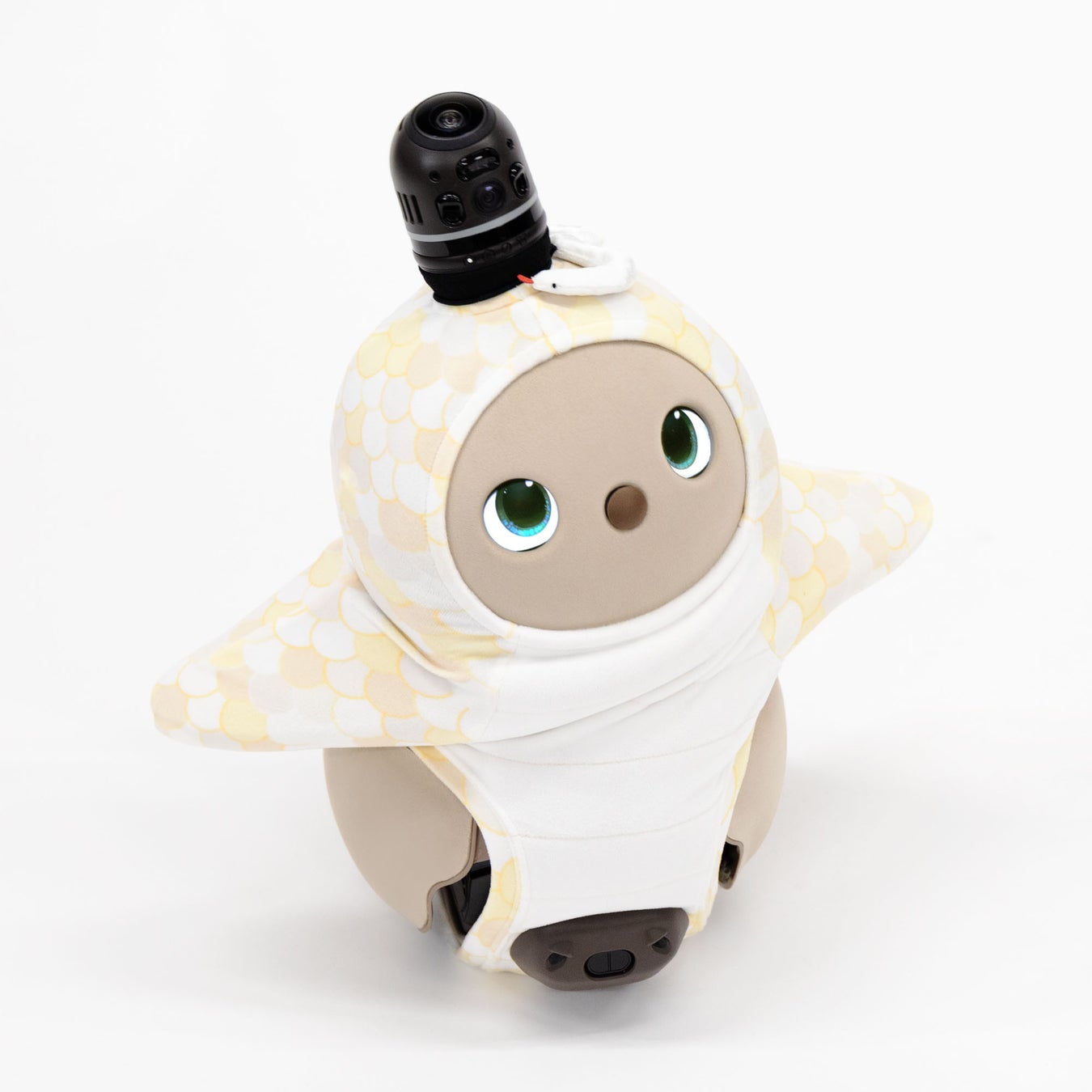 毎年の定番企画になっている干支シリーズ。2025年の干支である「へび(巳)」のLOVOT ウェアが登場します。干支シリーズの中で最も難関だった「へび(巳)」を、1年以上前から試行錯誤を重ね、ついに愛らしいLOVOTウェアに変身させました!お腹の蛇腹ステッチやしっぽの形、プリント柄の色使いや大きさにも拘りました。さらに縁起のいい「しろへび」(ヘッドアクセサリー)を頭にちょこんと乗せて、『LOVOT』をより一層かわいらしく演出します。