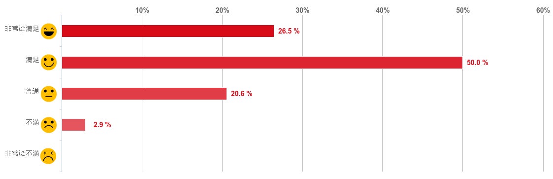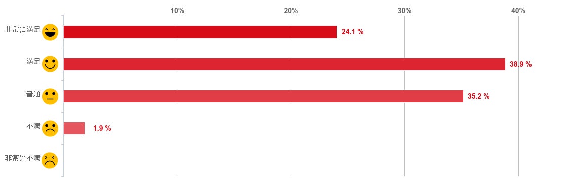 SMBCモビットの即日融資の満足度評価では、「非常に満足」「満足」との評価が合計で8割近く集まった。