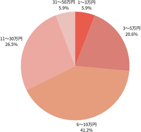 SMBCモビットで即日融資を受けた人の借入希望額は「6~10万円」が同率で最も多く、回答者全員が50万円以内に設定していることがわかった。