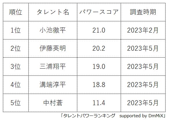 本ランキングは、2023年5月度に実施したタレント調査データ(一部過去実施データ)を利用し、タイトルに応じてランキング形式でまとめたものです。