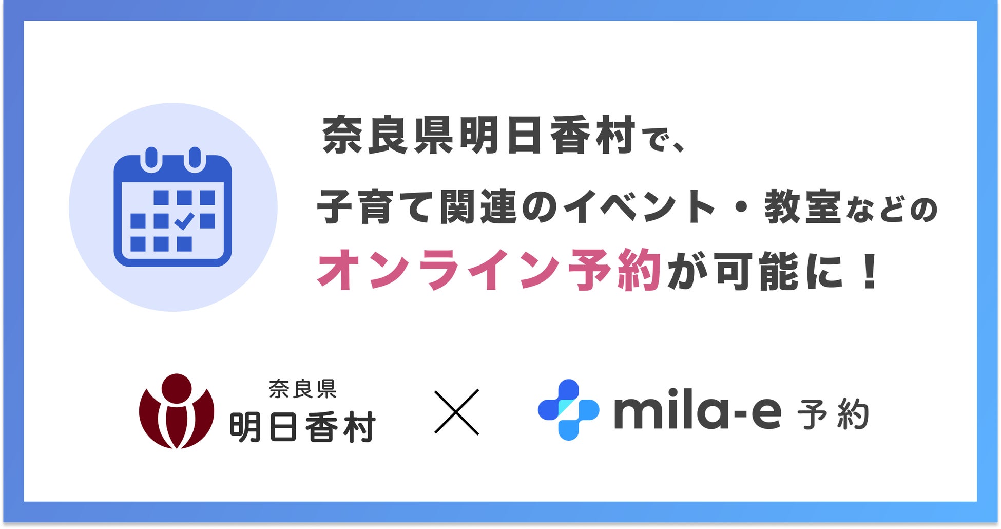 ミラボ、奈良県 明日香村で 子育て支援のオンライン予約「mila-e 予約」提供開始