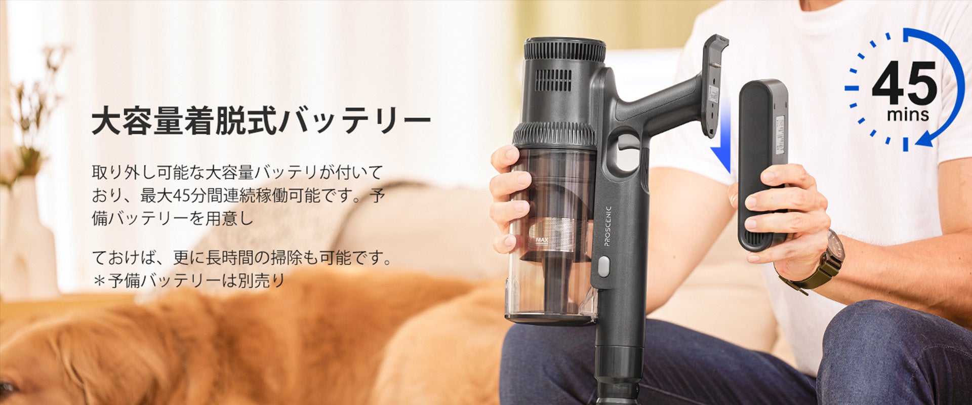 そして、着脱可能な電池が本当に便利。私は子供たちの昼寝中や夜、素早く電池の交換ができ、中断なく効率的なクリーニングが可能です。