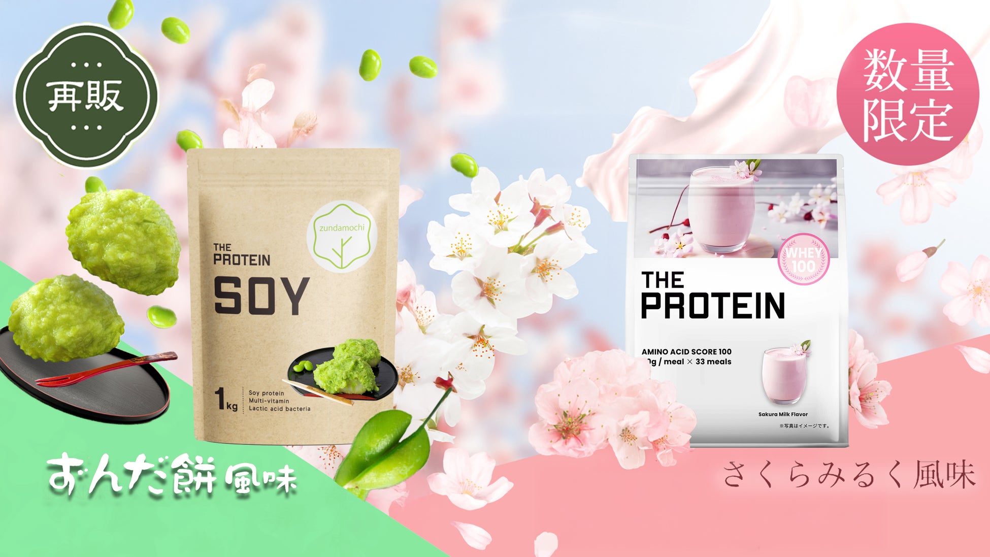 【春の到来】大人気フレーバーが待望の再登場!!THE PROTEIN(通称:ザプロ)から「ソイプロテイン ずんだ餅風味」と「ホエイプロテイン さくらみる風味」が数量限定で復活販売!!