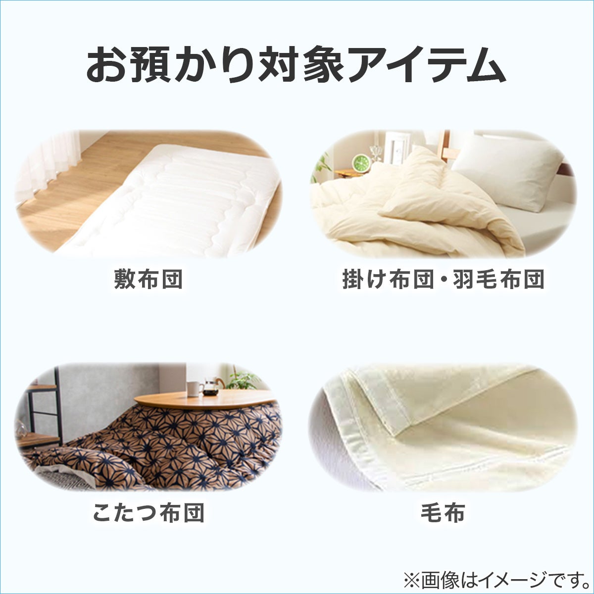 敷布団・掛け布団・羽毛布団・こたつ布団・毛布