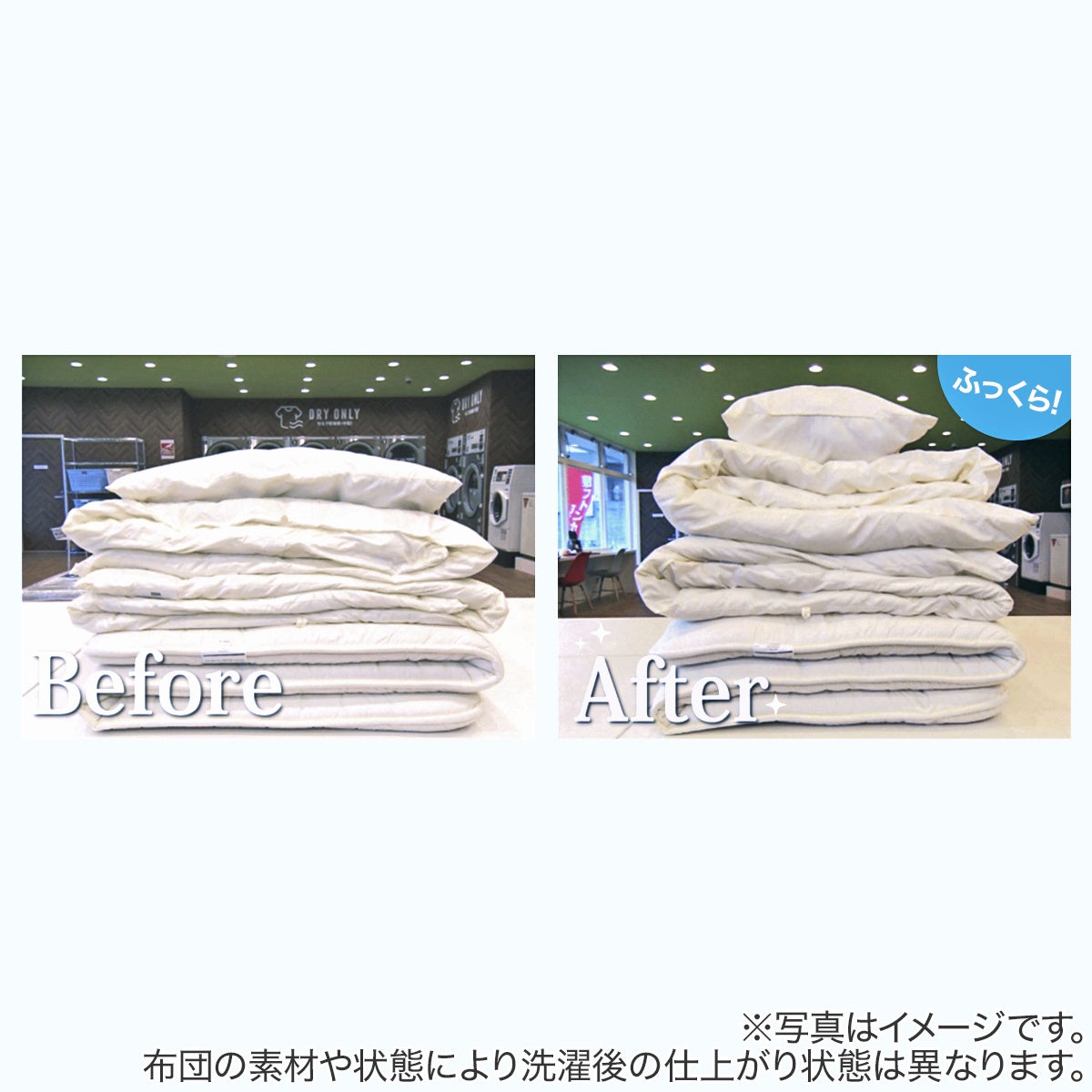 ※写真はイメージです。布団の素材や状態により洗濯後の仕上がり状態は異なります