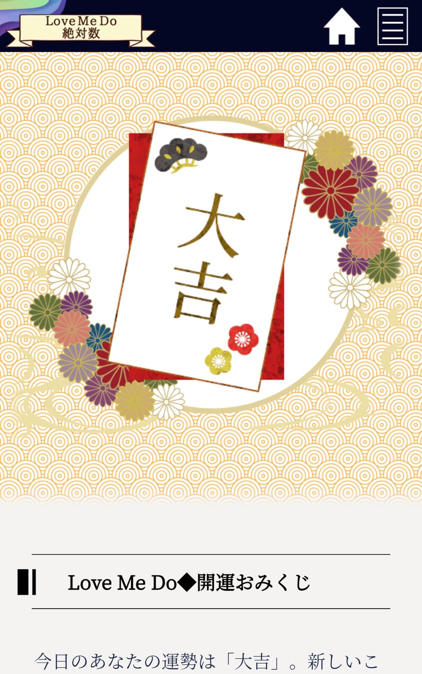 有名人の電撃婚や世界的なビッグニュースの予言を的中させて大人気の占い師Love Me Doの公式サイト『Love Me Do◆絶対数』にて、『ラブちゃんの開運おみくじ』の提供が開始されました。
