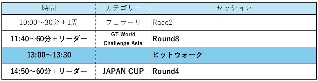 また、併催レースとして、日本国内を転戦するフェラーリ296チャレンジのワンメイクレース「フェラーリ・チャレンジ・ジャパン Round4」も行われ、アジア地域を転戦する国際的なモータースポーツ観戦いただけます。