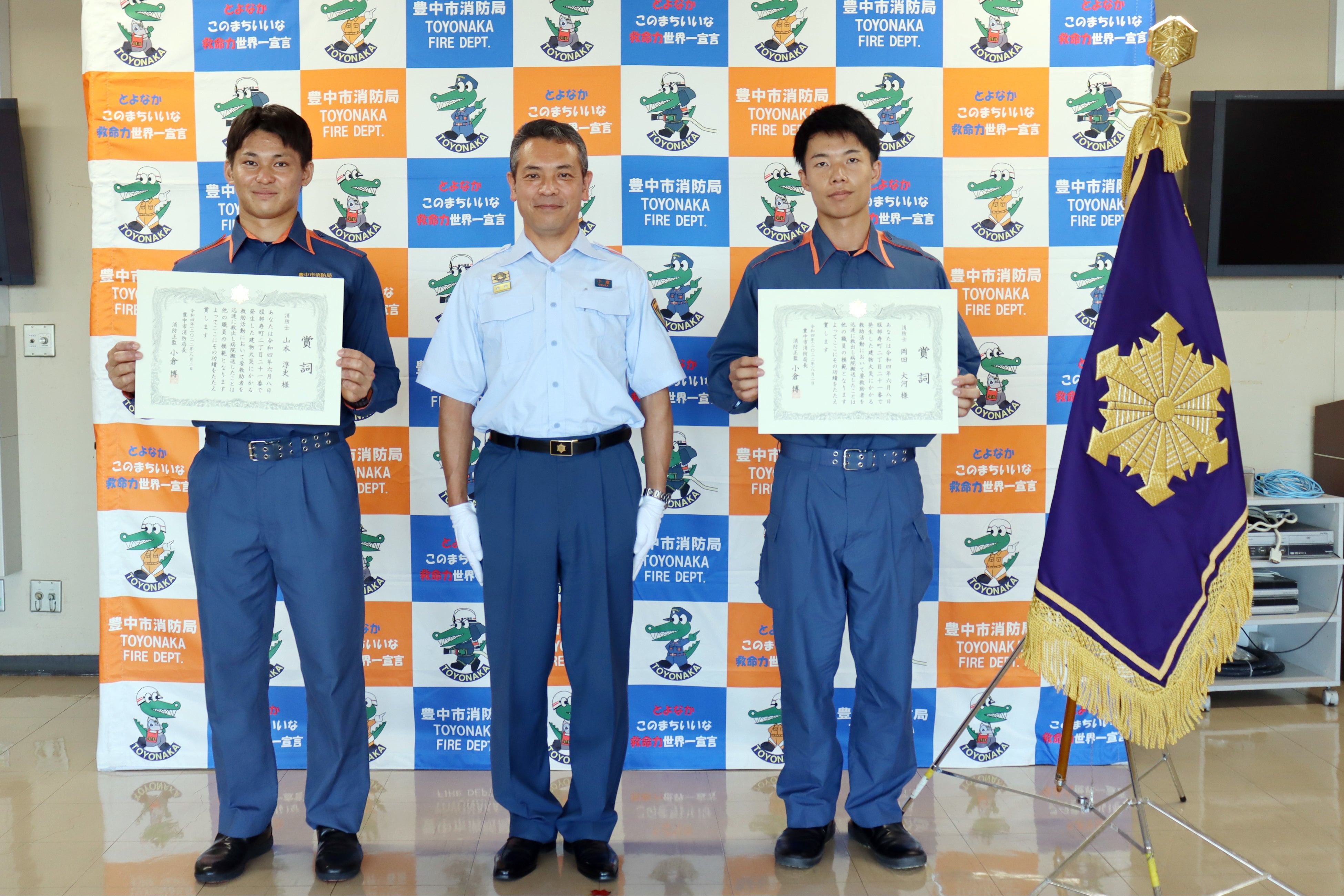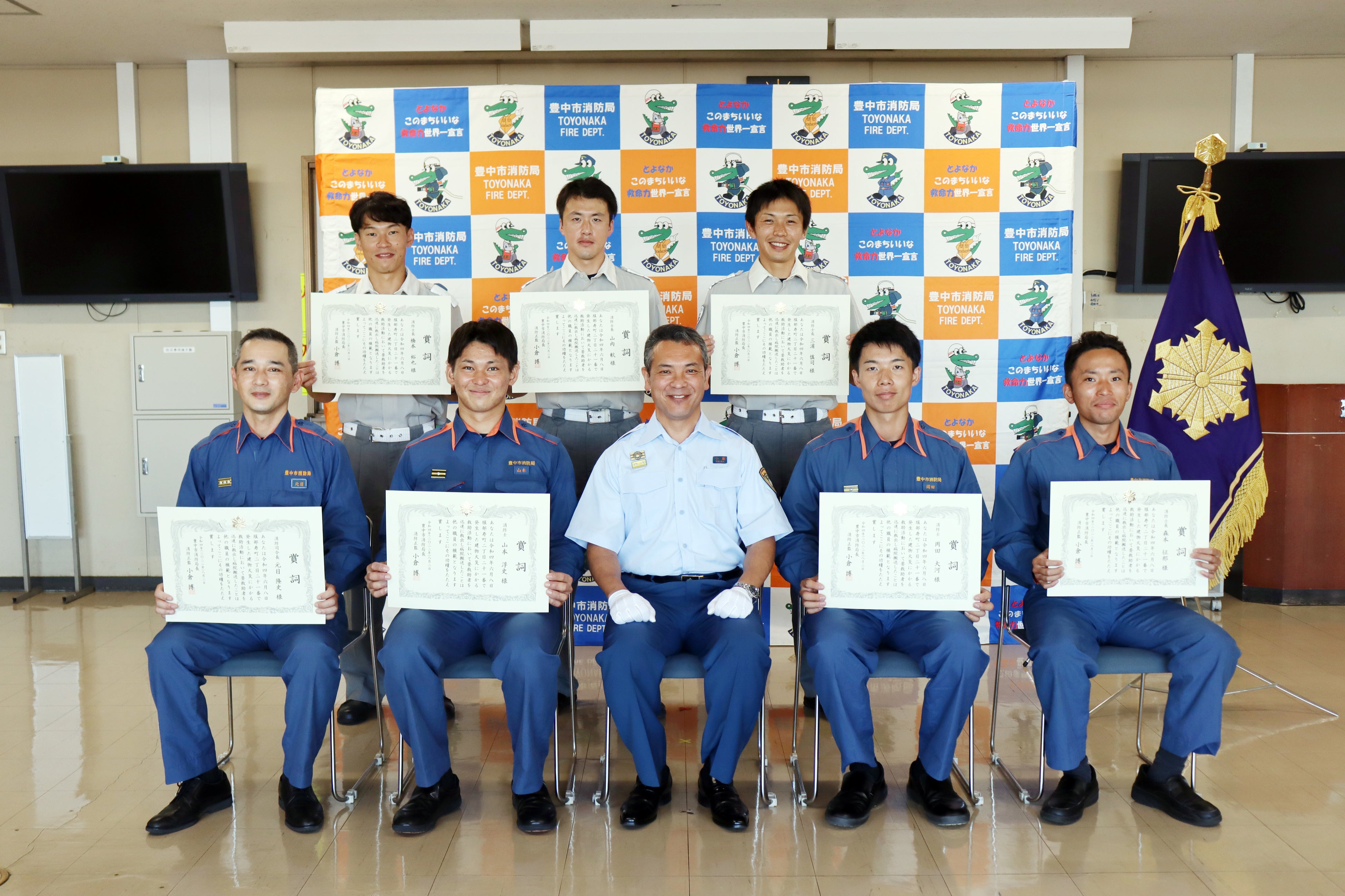 豊中市消防局は、市内の出火建物から被災者の迅速な救助を行った消防士4人と、的確な応急処置・病院搬送を行った救急隊員3人に対して、人命救助の功績を称え8月2日(火)に消防局長から表彰状を授与しました。