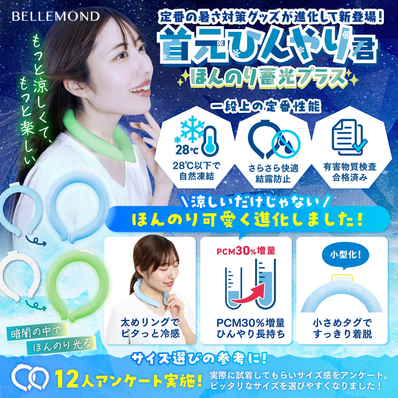 福岡県大野城市 - Fun Standard株式会社(本社:福岡県大野城市)が運営するブランド「BELLEMOND(ベルモンド)」は、『首元ひんやり君 ほんのり蓄光タイプ』を発売しました。