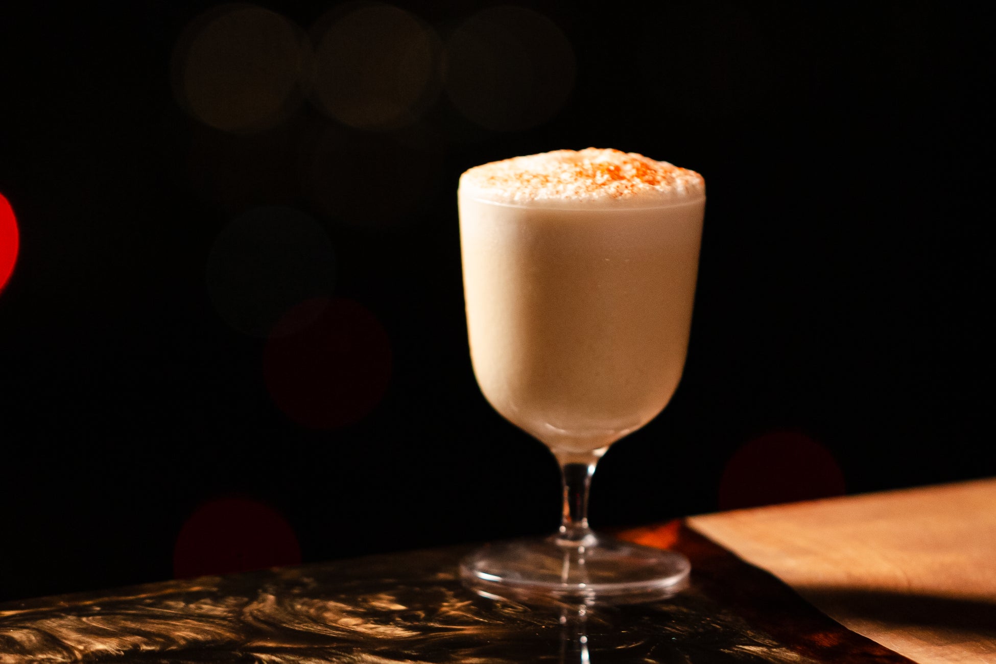 ロン・サカパ23、焦がし味噌コーディアル、わかめマルサラ、卵白、レモンジュース