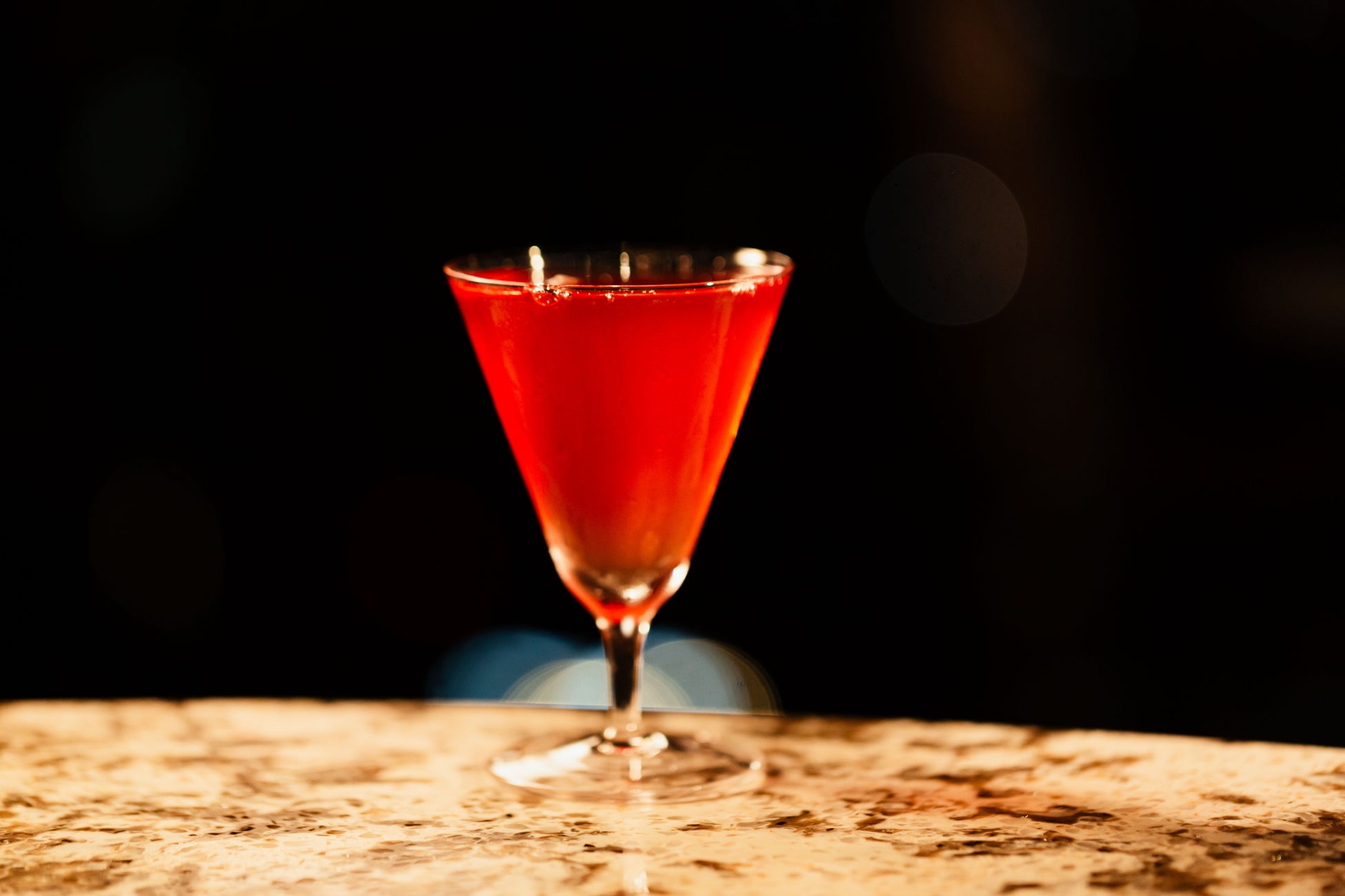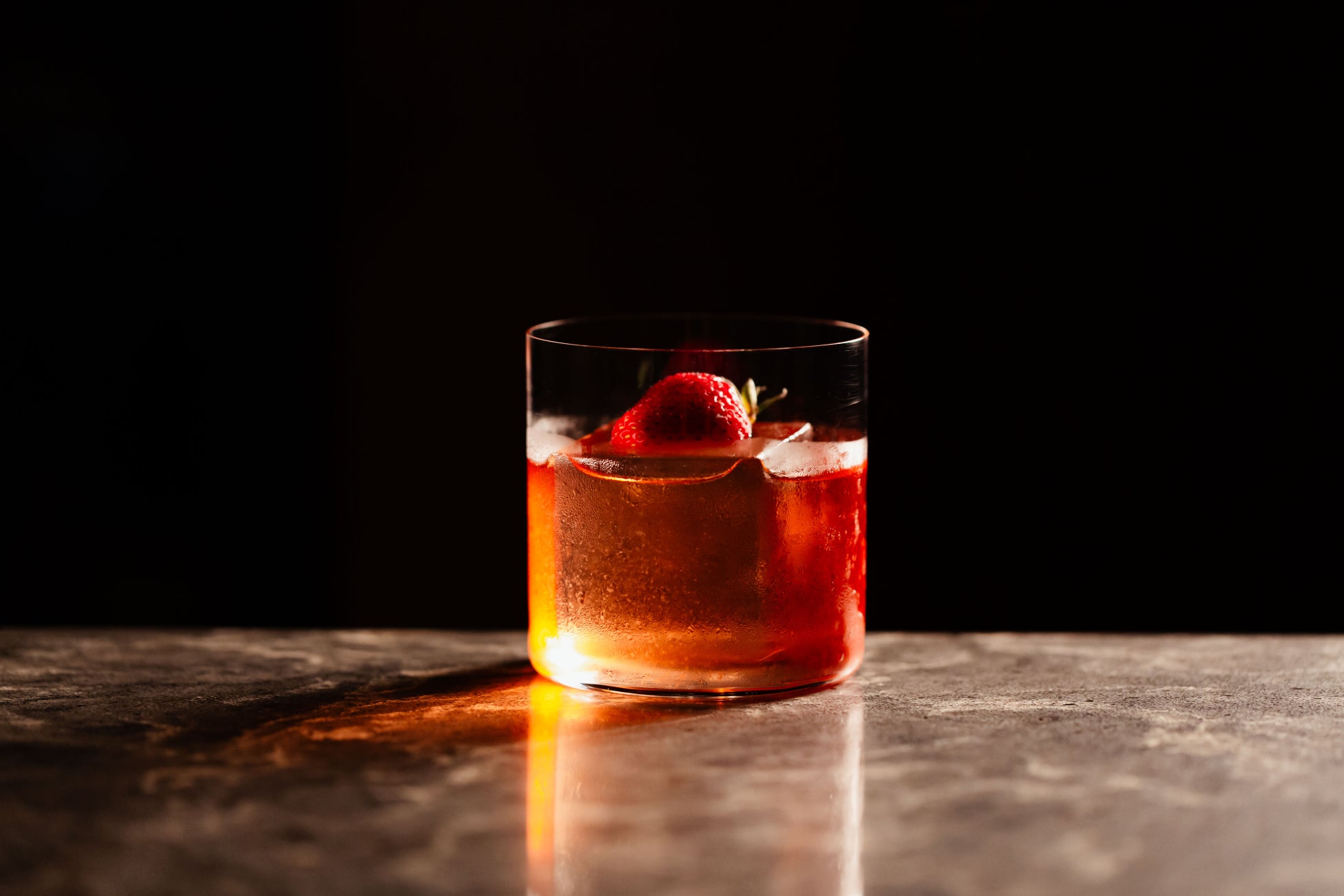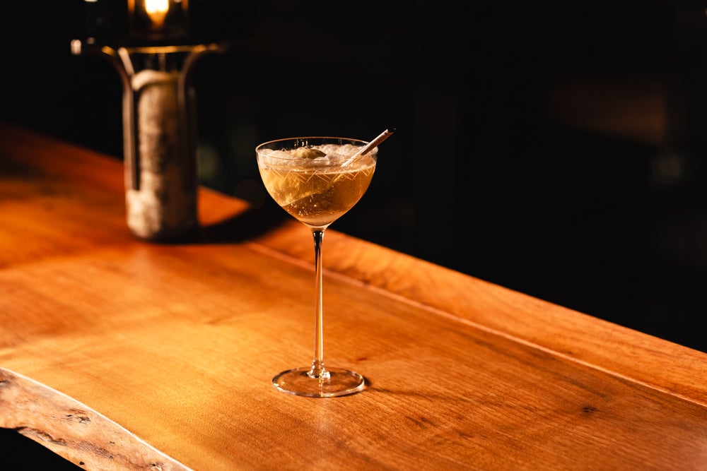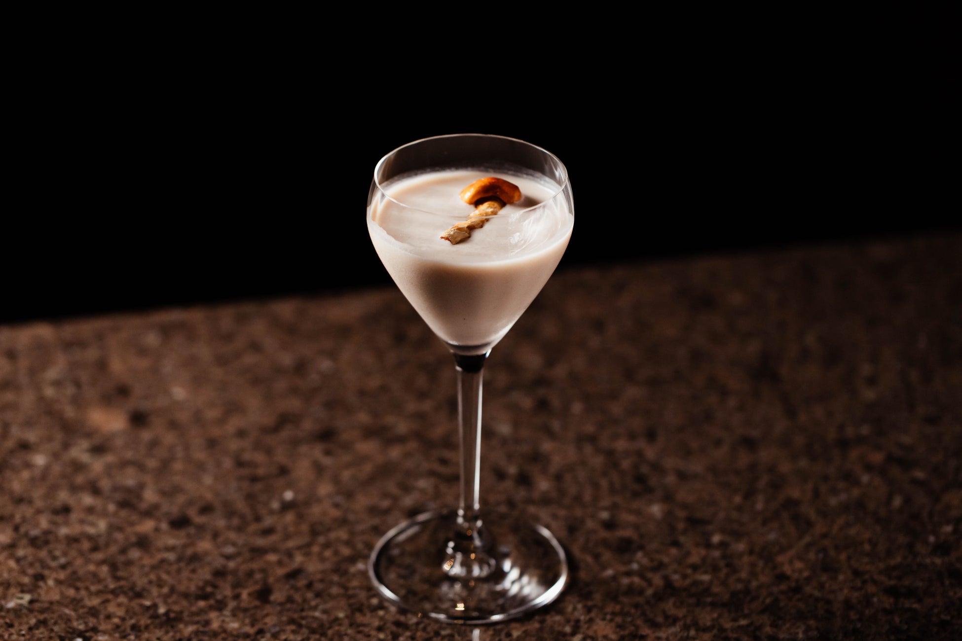 ブレット バーボンウィスキー、ヘーゼルナッツリキュール、ルバーブコーディアル、ローストヘーゼルナッツベルモット、マンチーノ チナート