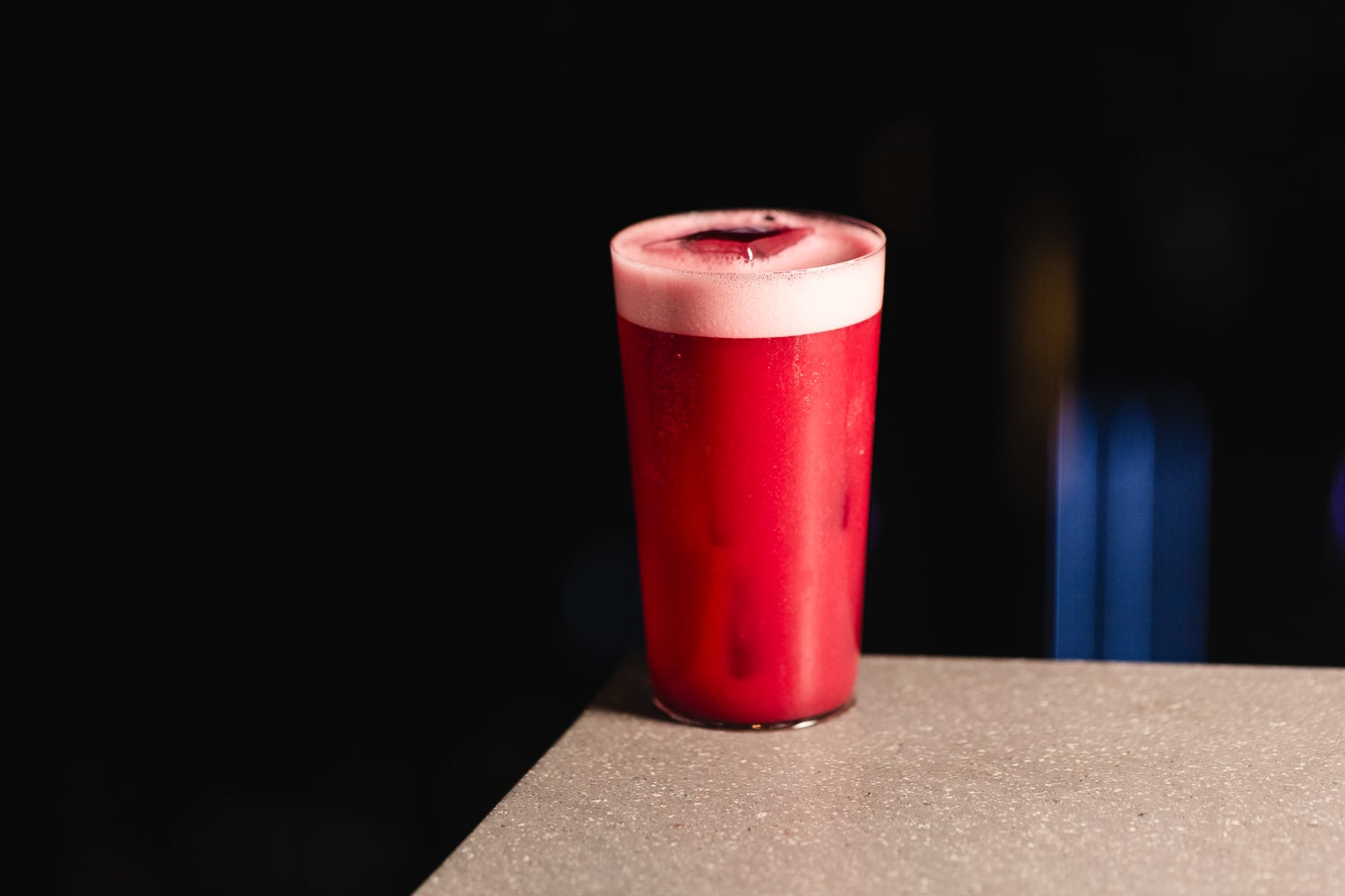 ロン・サカパ23、ココナッツラム、ココナッツクリーム、パイナップルジュース、SDGsパイナップルピュレ、イチゴリキュール、イチゴジュース、SDGsイチゴピュレ、クラリファイド・ミルク・パンチ