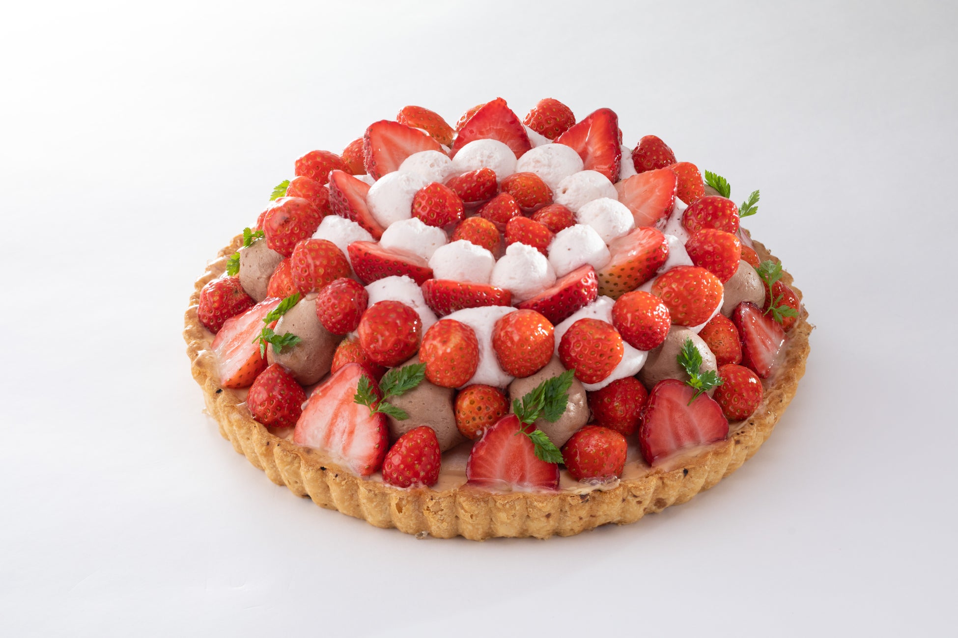 栃木県産とちおとめをたっぷり使用したタルトです。自家製いちごピューレを使用した甘酸っぱいいちごクリームと合わせています。チョコクリームがアクセントとなり、また違った味わいになります。