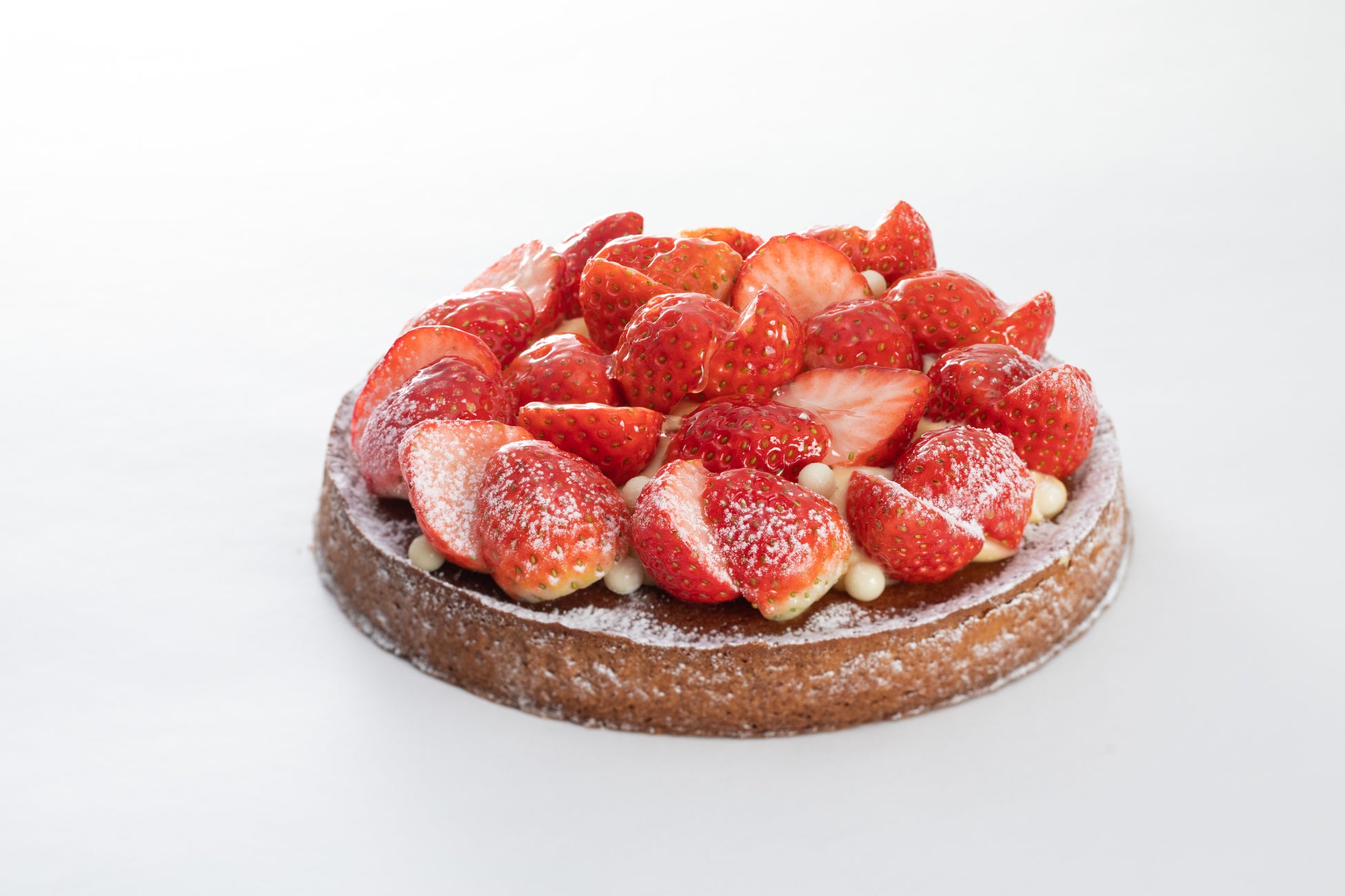 アーモンド風味の豊かなダマンド台に、シャンティ―クリームを絞り、旬のとちおとめを飾りました。