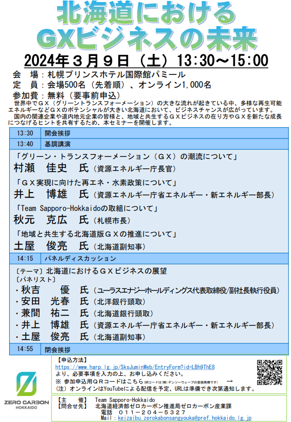 「北海道におけるGXビジネスの未来」セミナーの開催について