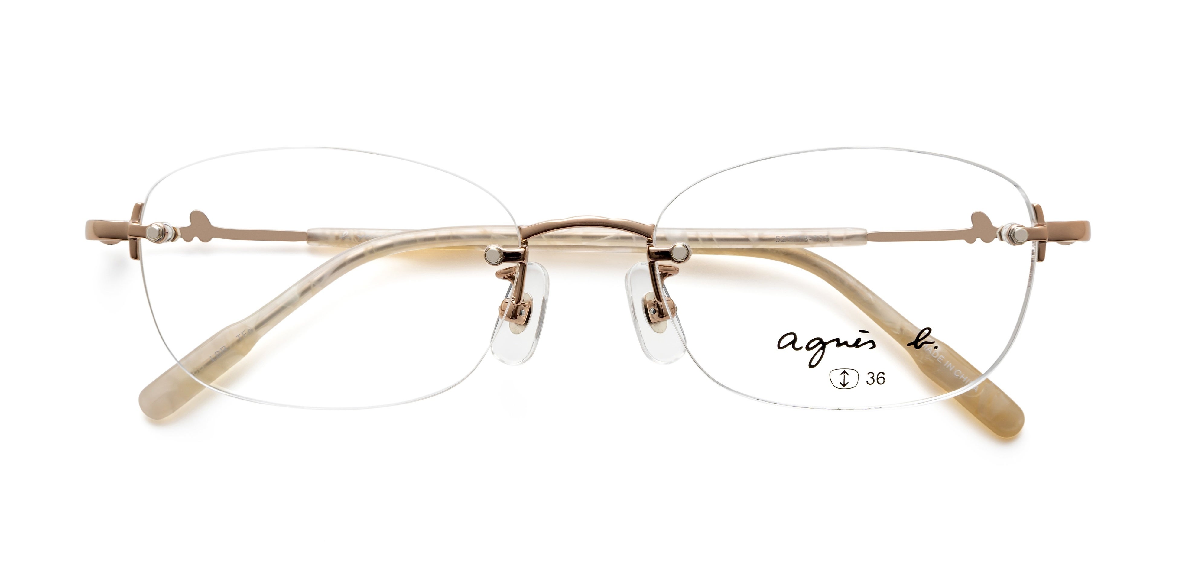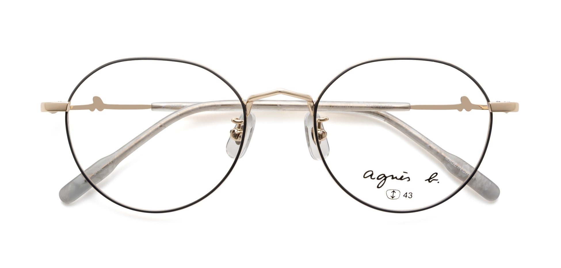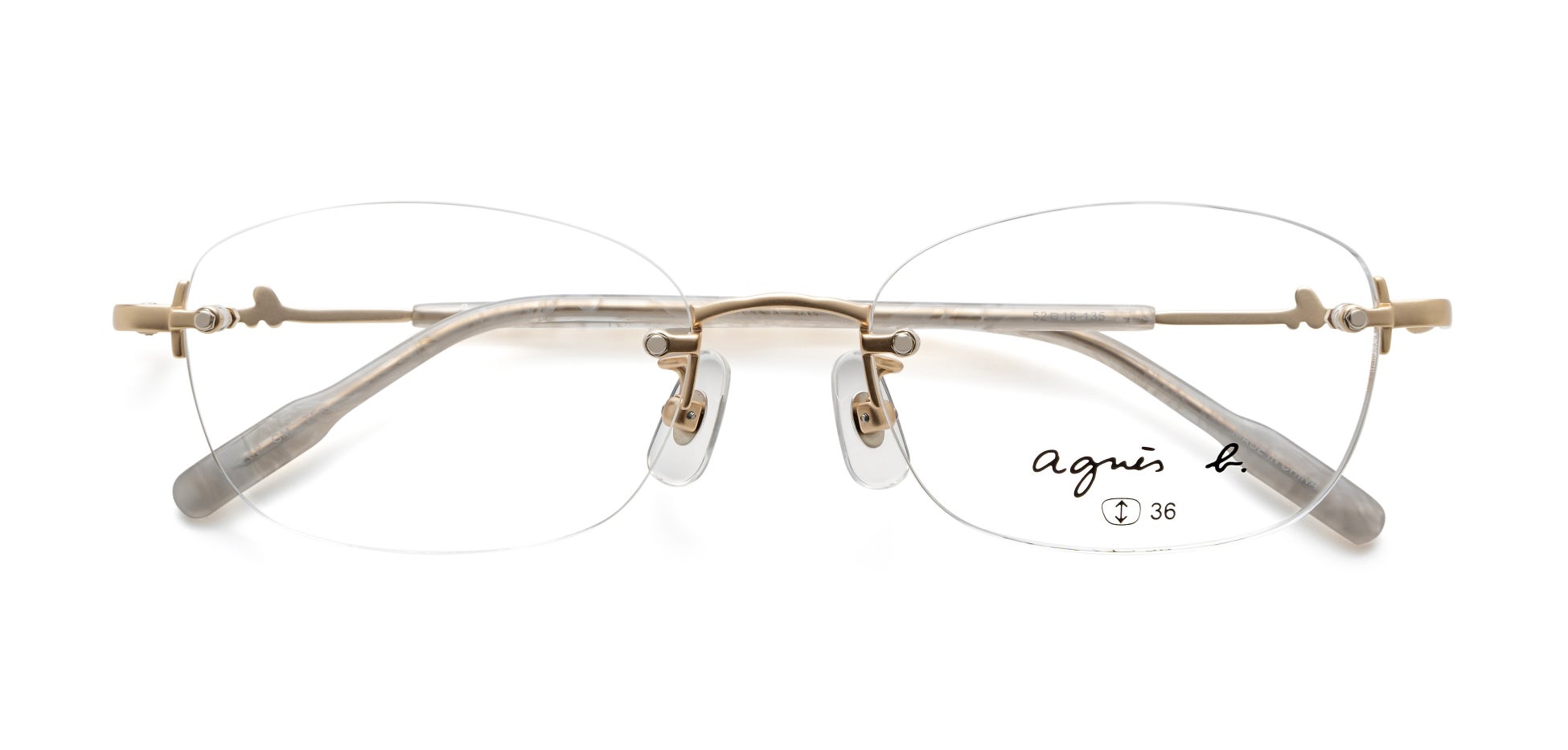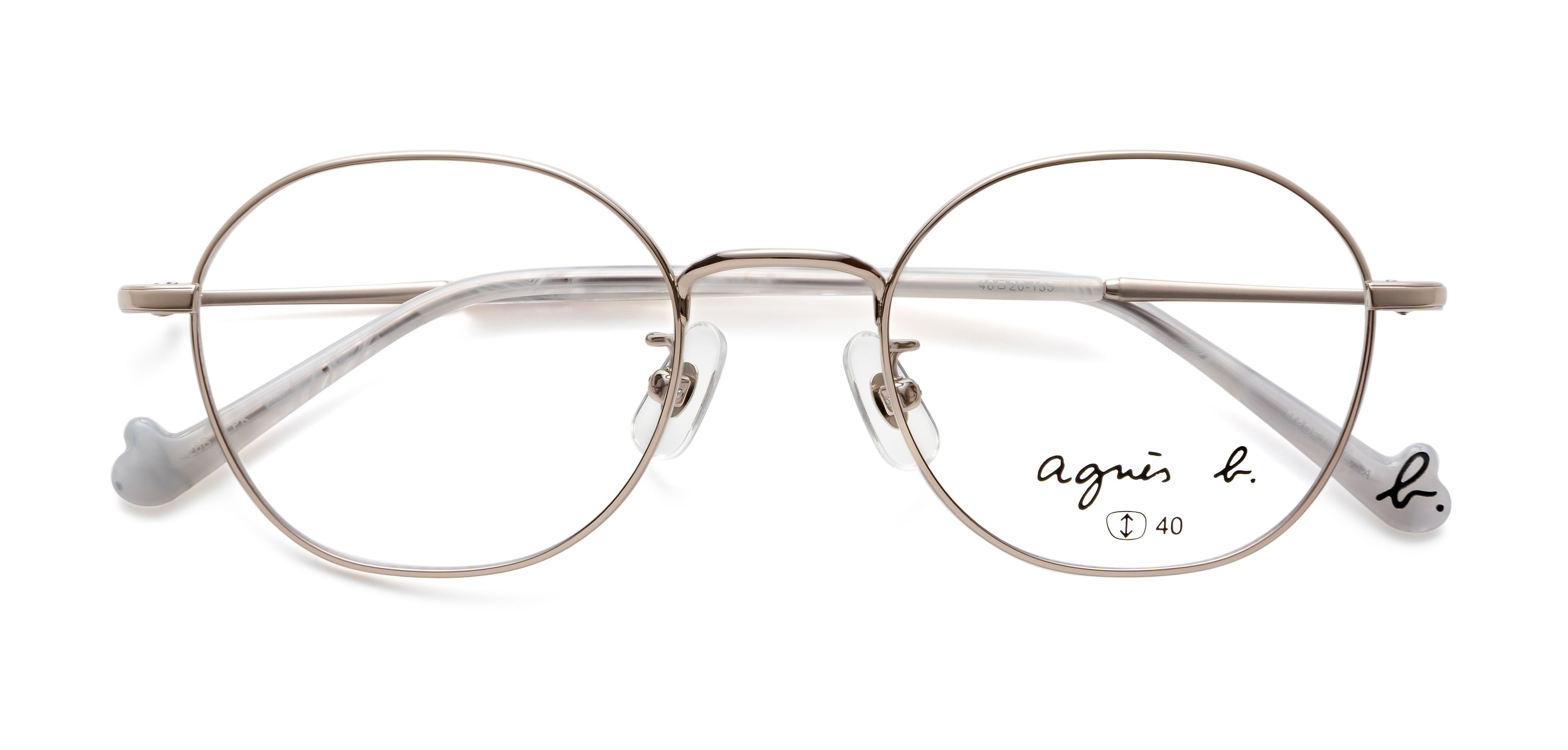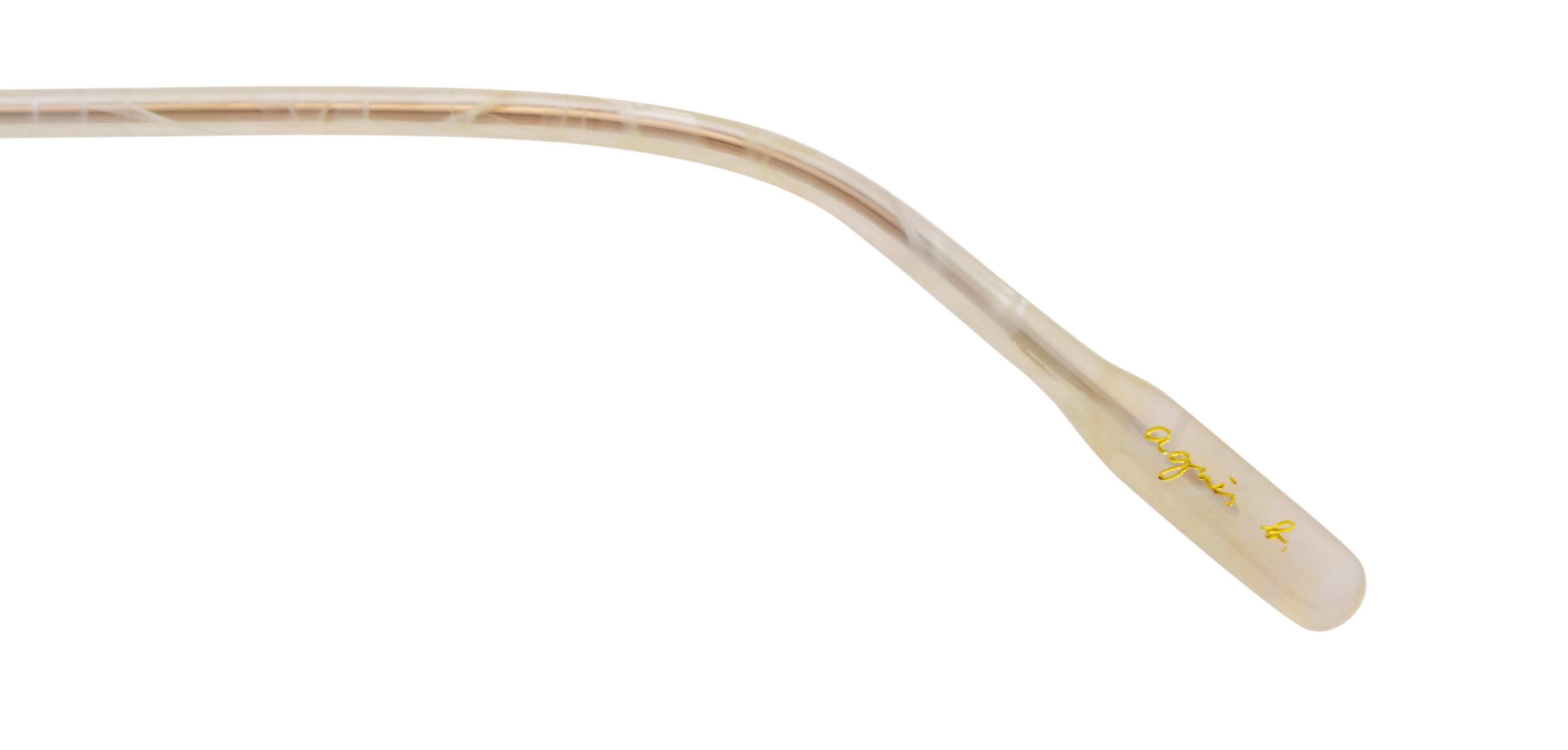 テンプルやモダンエンドには、ブランドのアイコンである“b.”マークをあしらい、さりげないアクセントを加えています。細部にまでブランドの世界観を表現することで、どの角度から見てもアニエスベーならではのスタイルを楽しめるアイウェアに仕上げました。