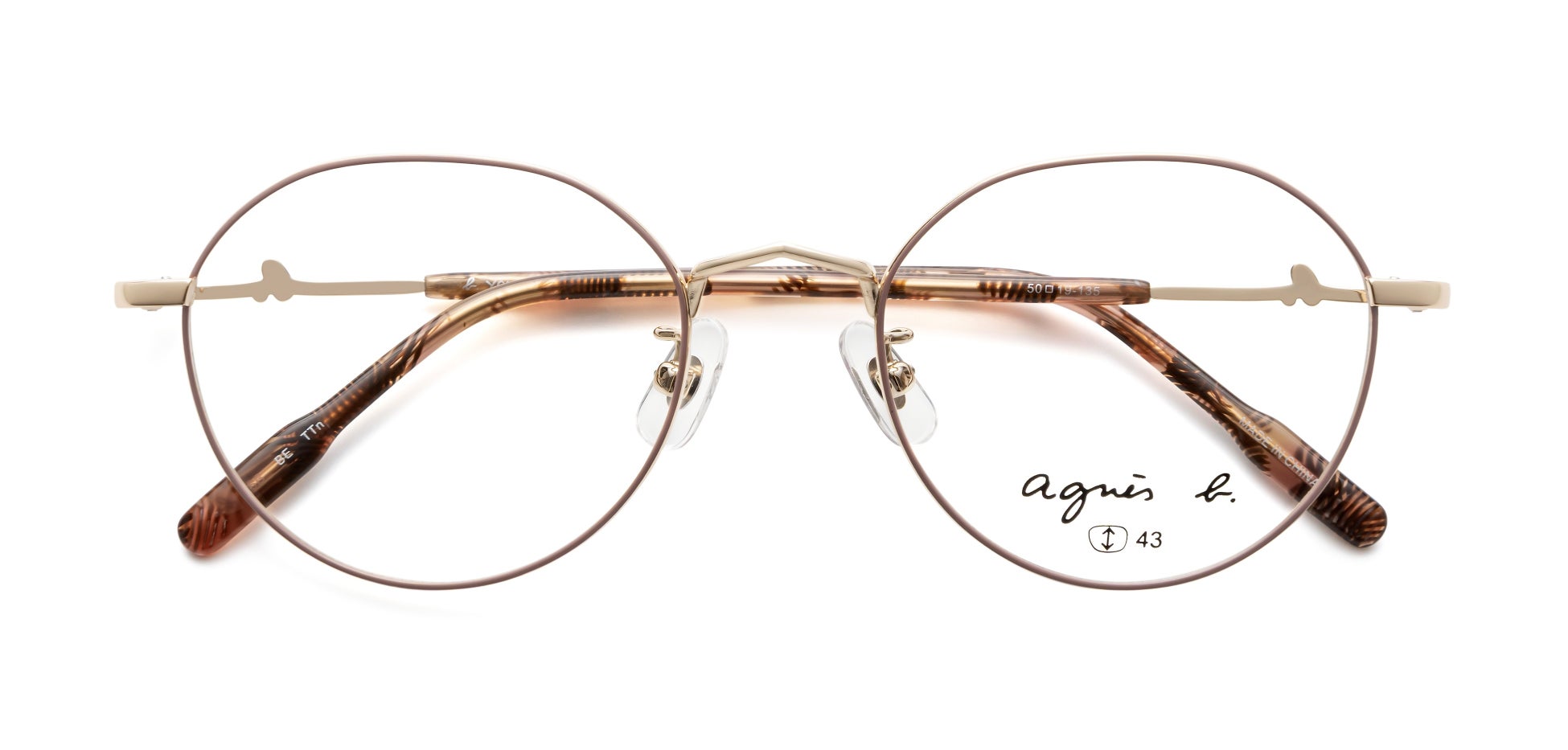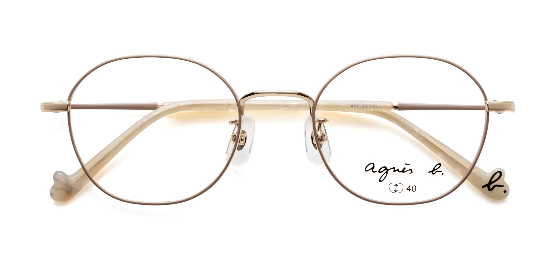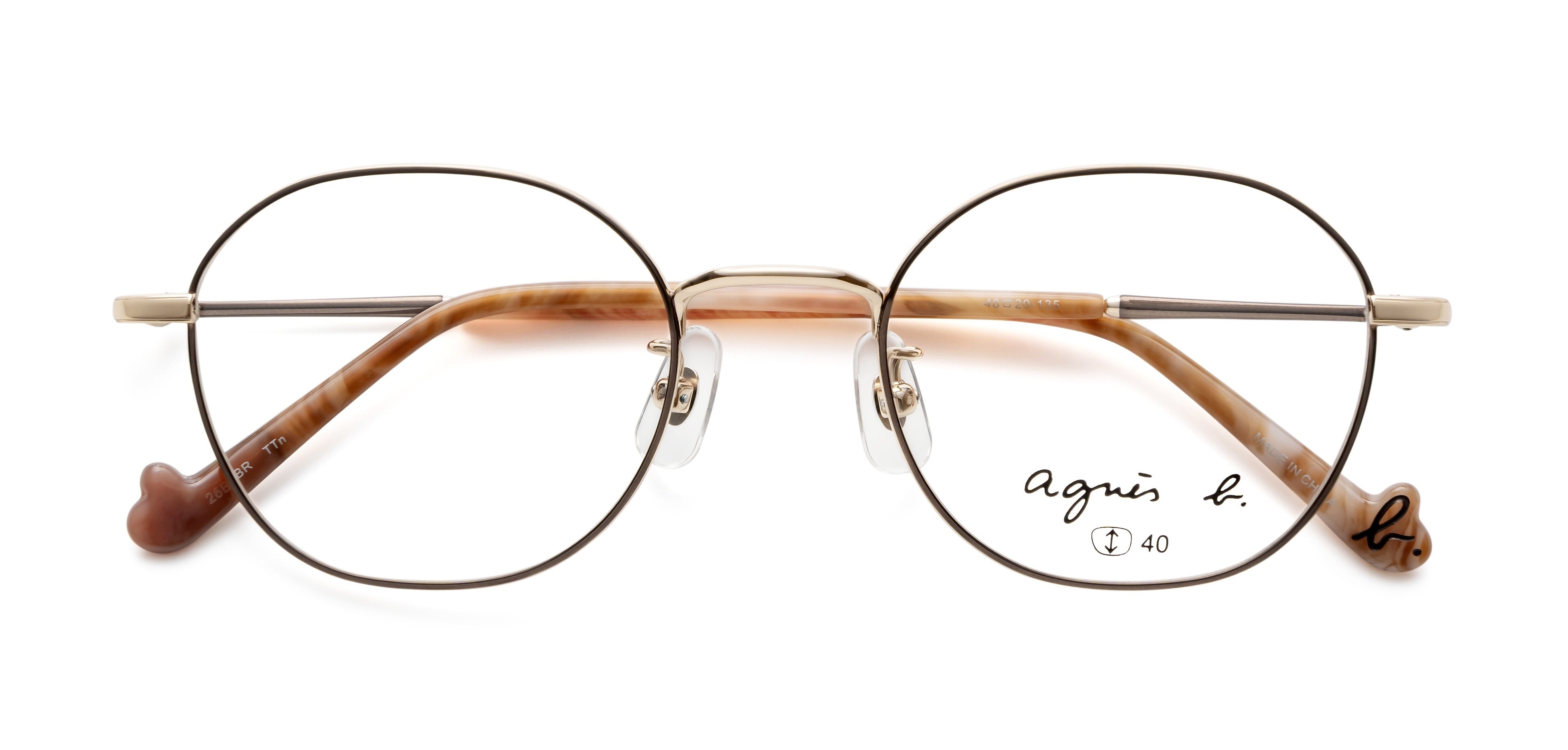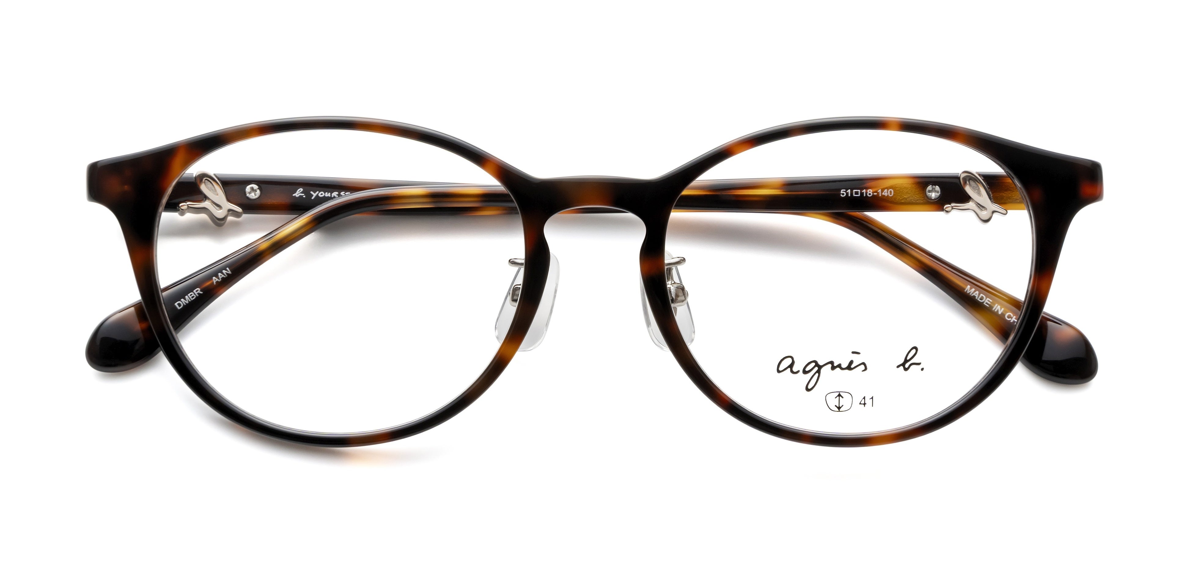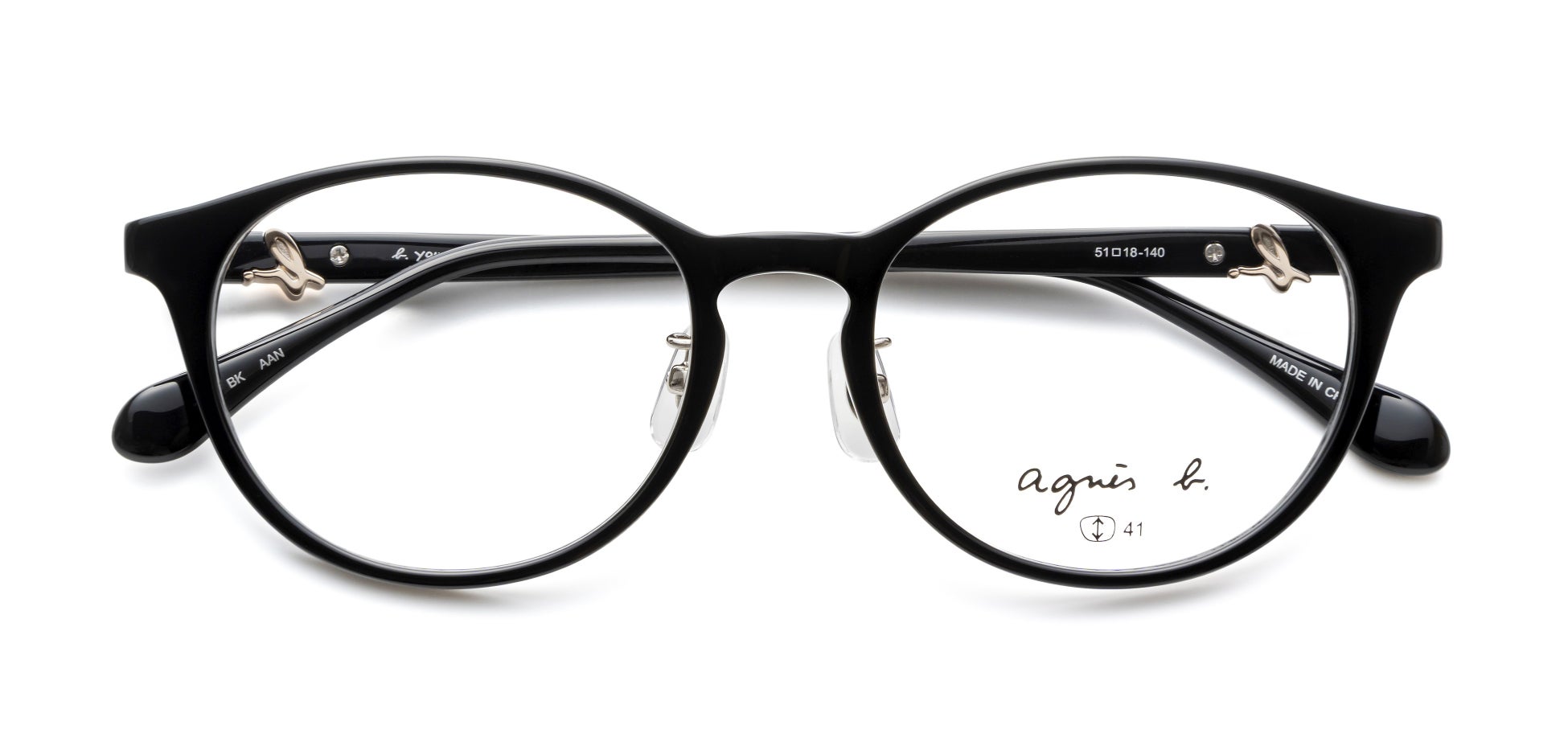 テンプルやモダンエンドには、ブランドのアイコンである“b.”マークをあしらい、さりげないアクセントを加えています。細部にまでブランドの世界観を表現することで、どの角度から見てもアニエスベーならではのスタイルを楽しめるアイウェアに仕上げました。