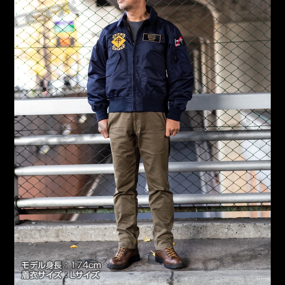 風防となる袖の二段リブ、中身の出ずらいポケット形状、グローブの上からでも扱いやすい大き目ファスナーヘッド、フライトジャケットらしい袖ポケットに襟周りの形状など「こだわり」が詰め込まれた一品。