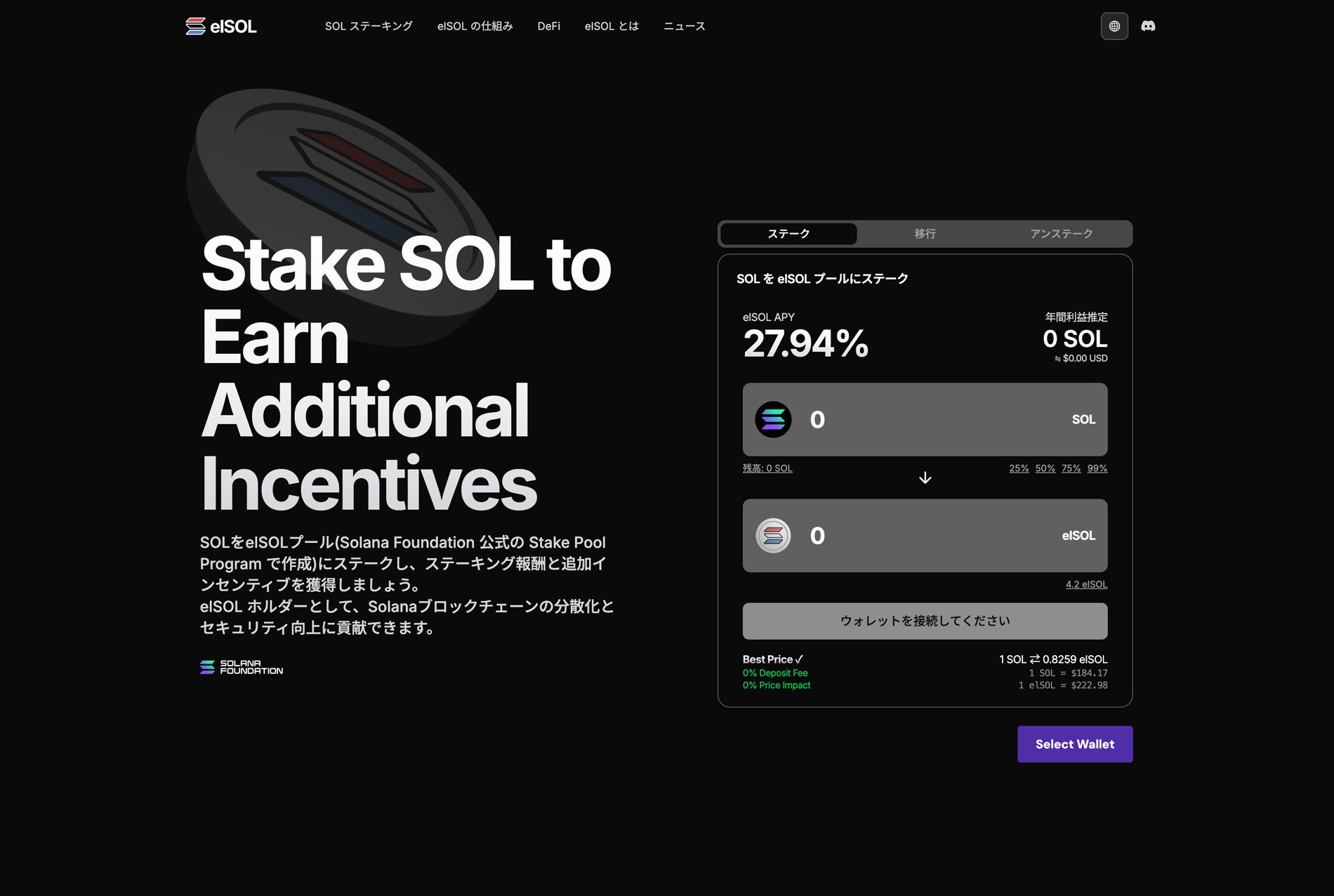 すべての elSOL バリデータは運用手数料・コミッションを 0 に設定しています。これによりステーキング報酬が不必要に減額されることなく、Solana ネットワークが提供する報酬をそのまま受け取ることができます。