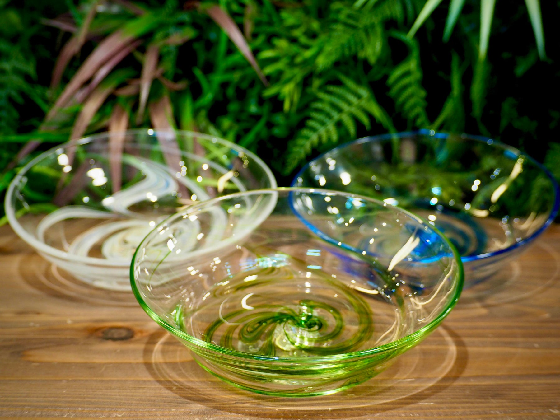 愛媛県今治市を拠点に活動する吹きガラス工房。日常使いからアート作品まで、一点もののガラス作品を手がける人気作家による工房です。日常使いの器からアート作品まで、一点一点手作業で制作。ガラスの持つ透明感と温かみを活かした、唯一無二の作品づくりが魅力です。吹きガラス体験も楽しめコップ、おちょこ、片口、小鉢、花瓶など、数種類のサンプルから好きな形、色を決めて制作していただけます。作家が丁寧にフォローしますので小学生から安心して体験可能です。