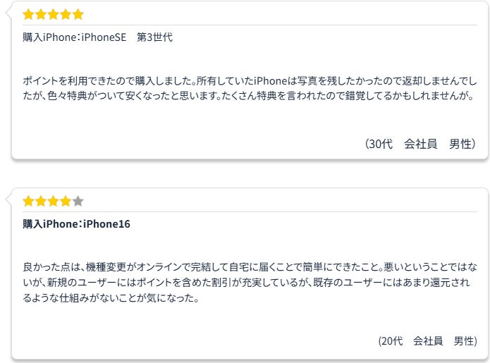 2025年5月より、楽天モバイルでiPhoneを購入したことがある方に対して口コミ調査を行い、その結果をまとめて記事に設置しました。
