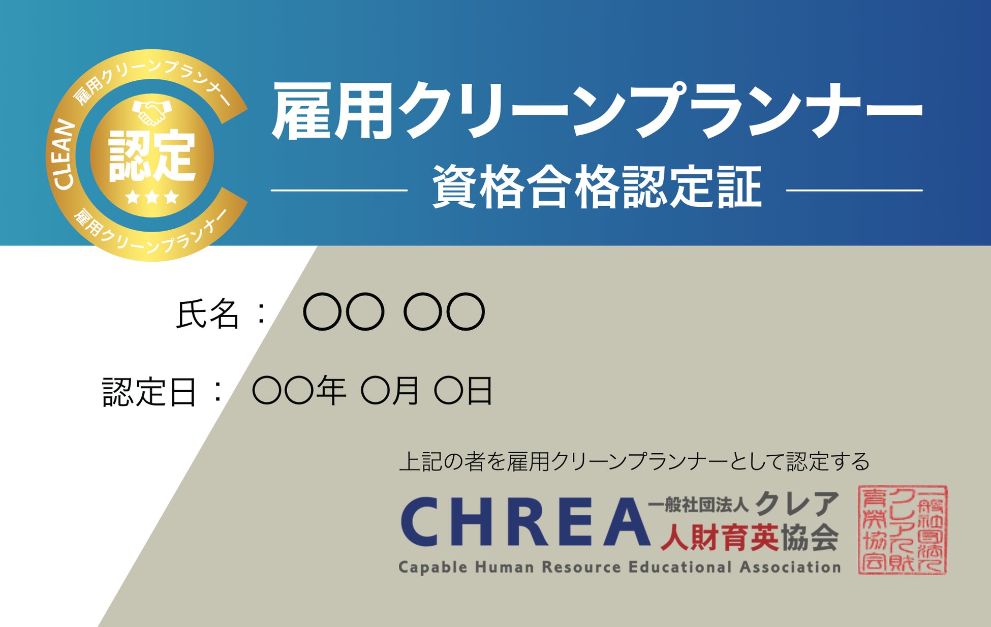 一般社団法人クレア人財育英協会(東京都千代田区、代表理事:酒井康博/SAグループ)は、ハラスメント予防に特化した専門資格「雇用クリーンプランナー」の合格者に対して、2024年7月より携帯型の「認定カード」の発行を開始します。