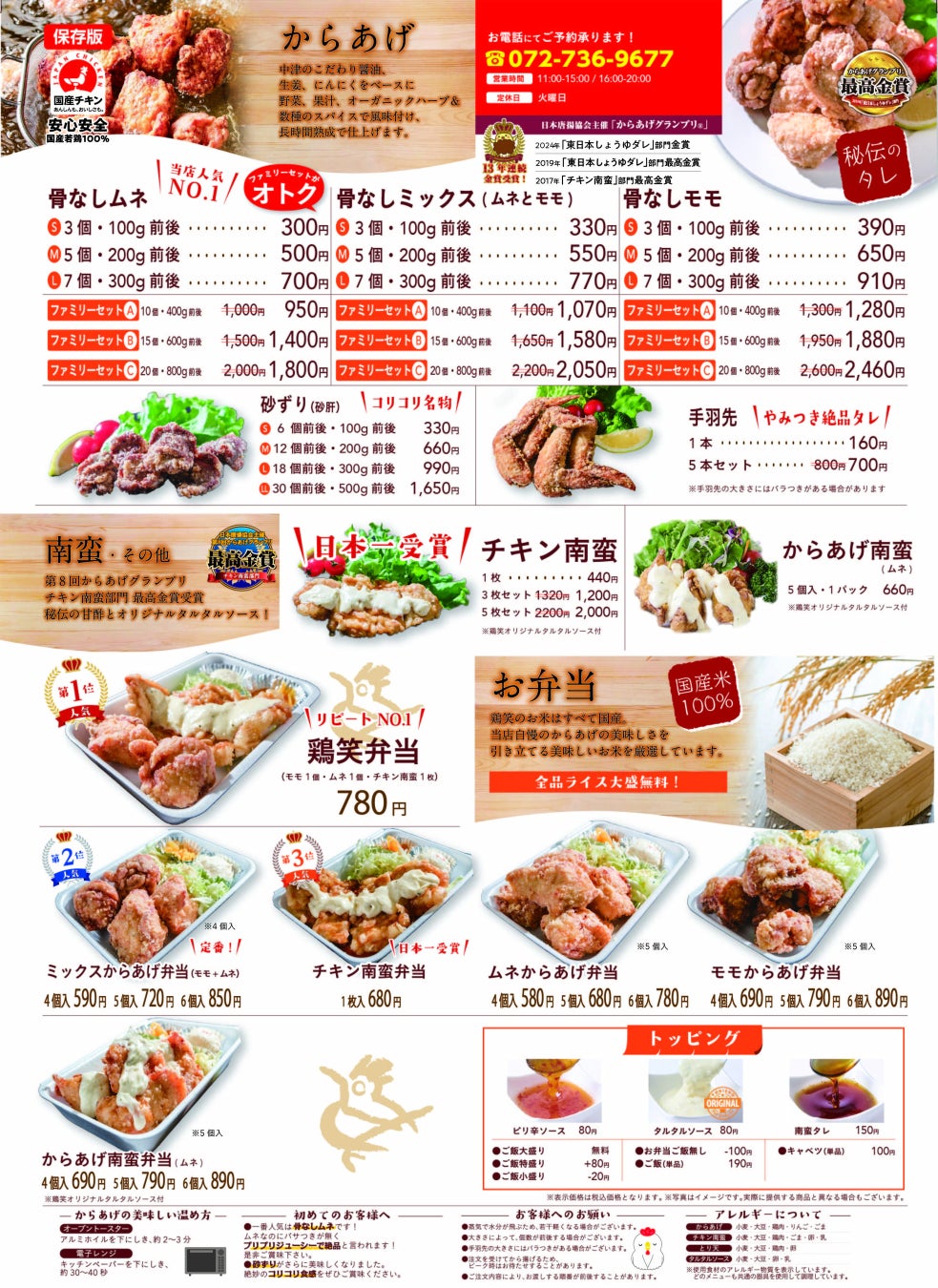 店名:からあげ専門店 鶏笑 箕面小野原店