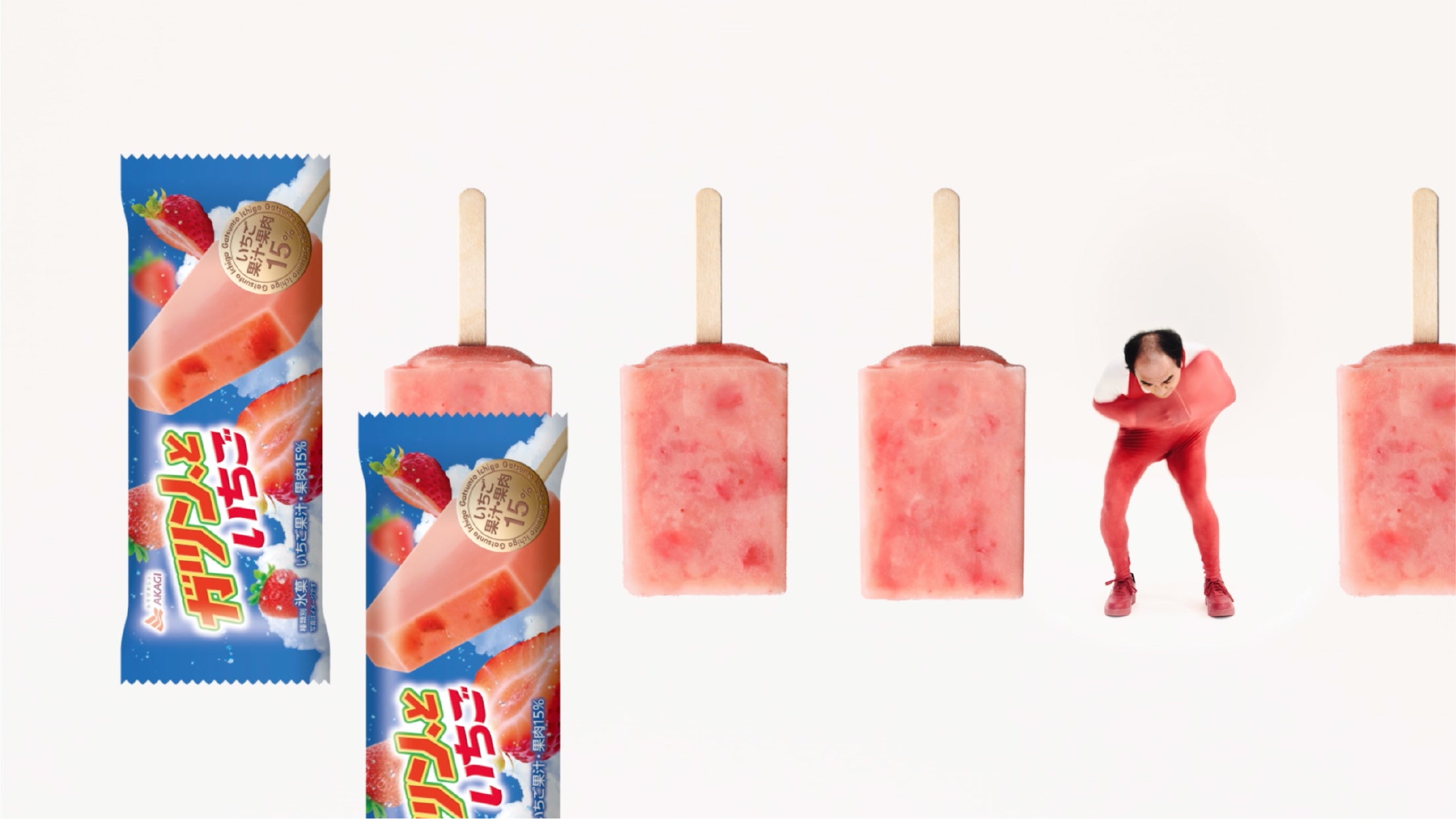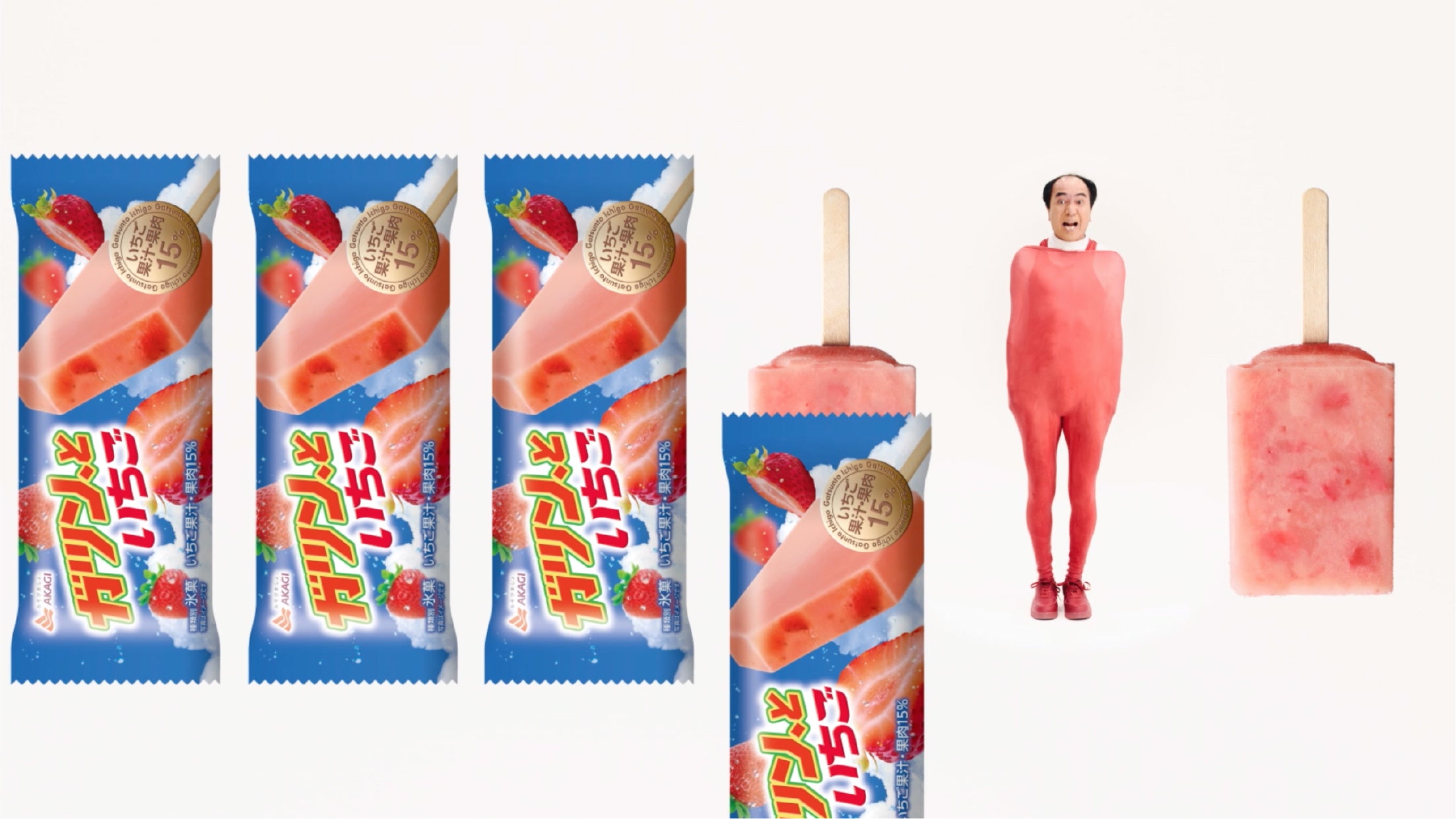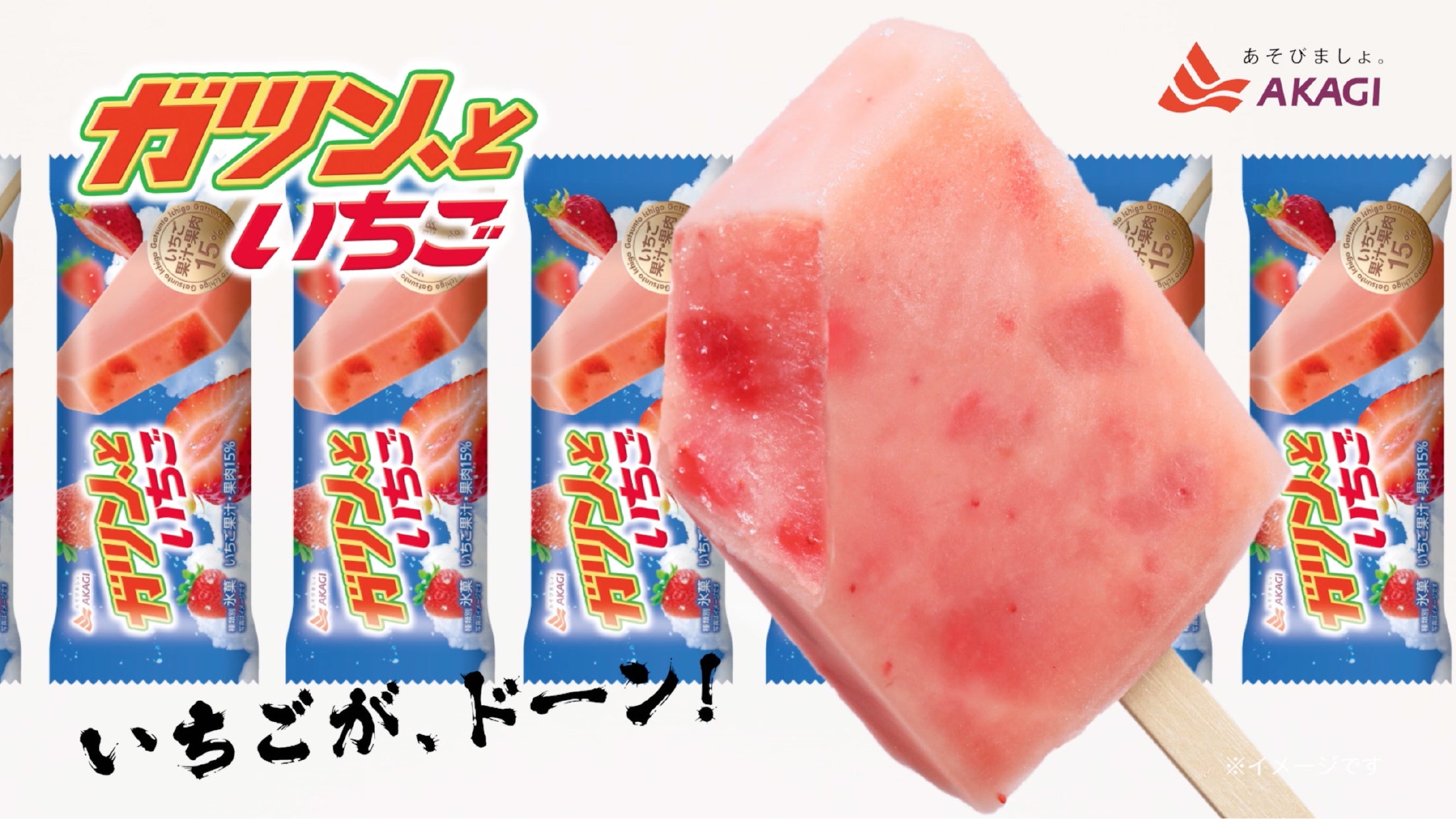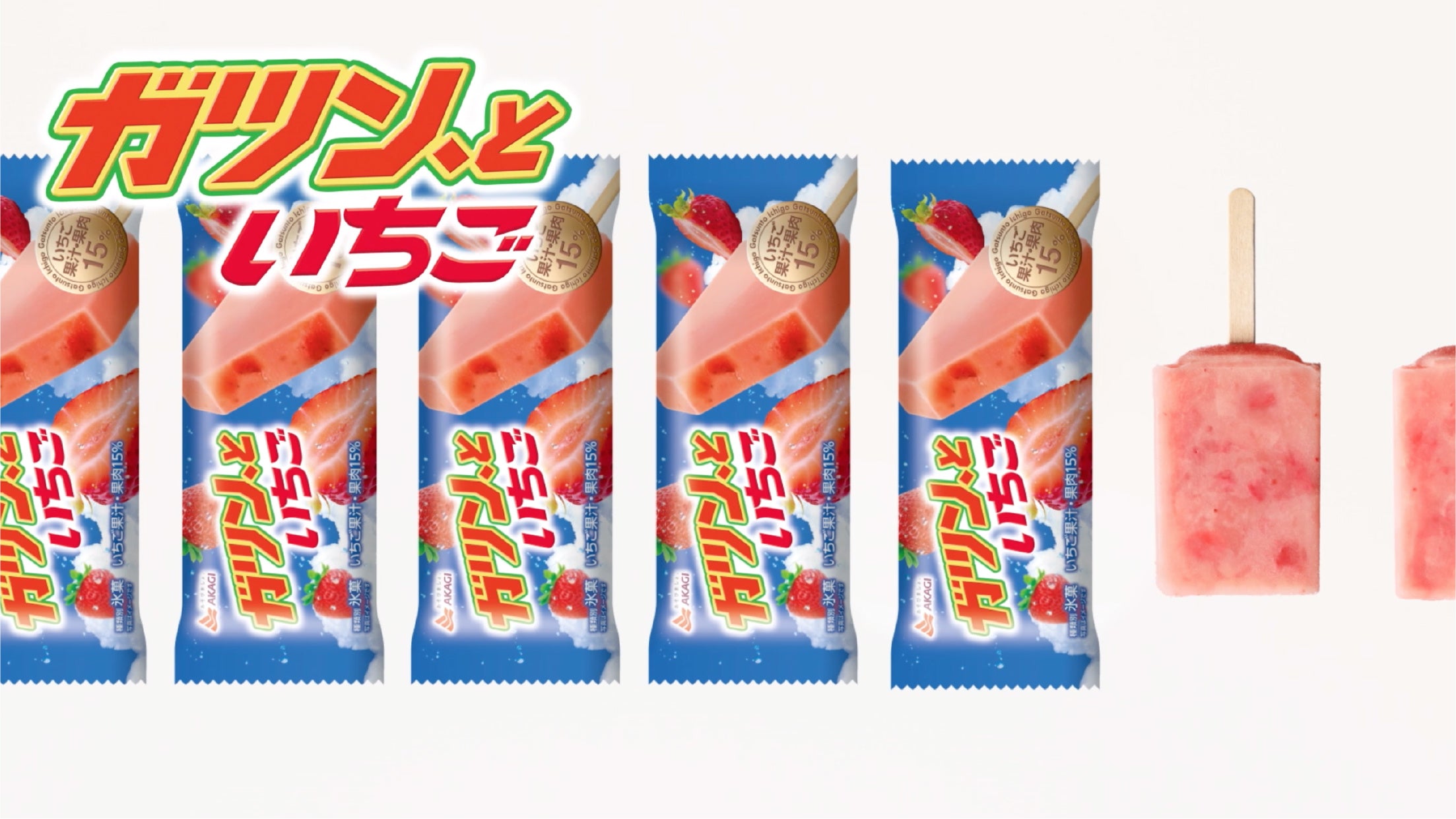 「ガツン、といちご」は、いちごアイスキャンディーにいちごの果肉、種、繊維を入れることで、いちごのつぶつぶとした食感をお楽しみいただけます。