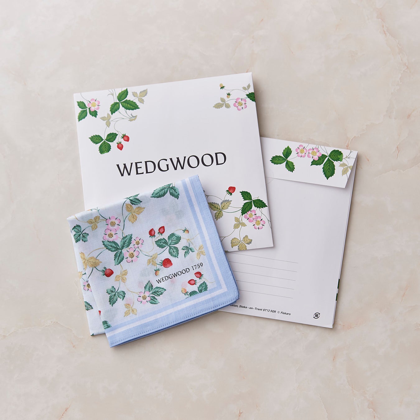想いを書くことで完成するパッケージとワイルド ストロベリー柄のハンカチ